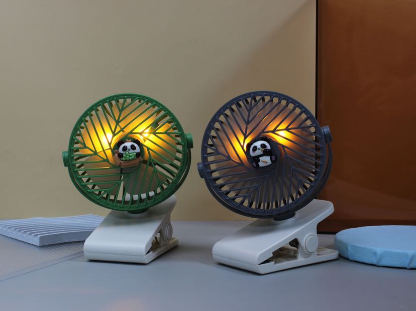 【产品名称】熊猫夹子灯光三档充电风扇