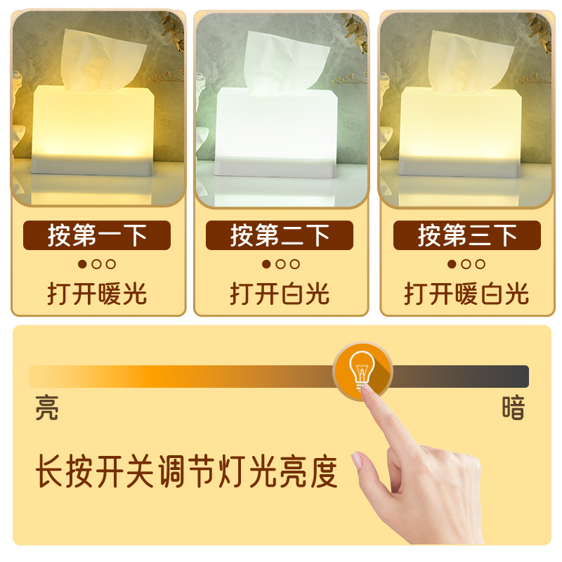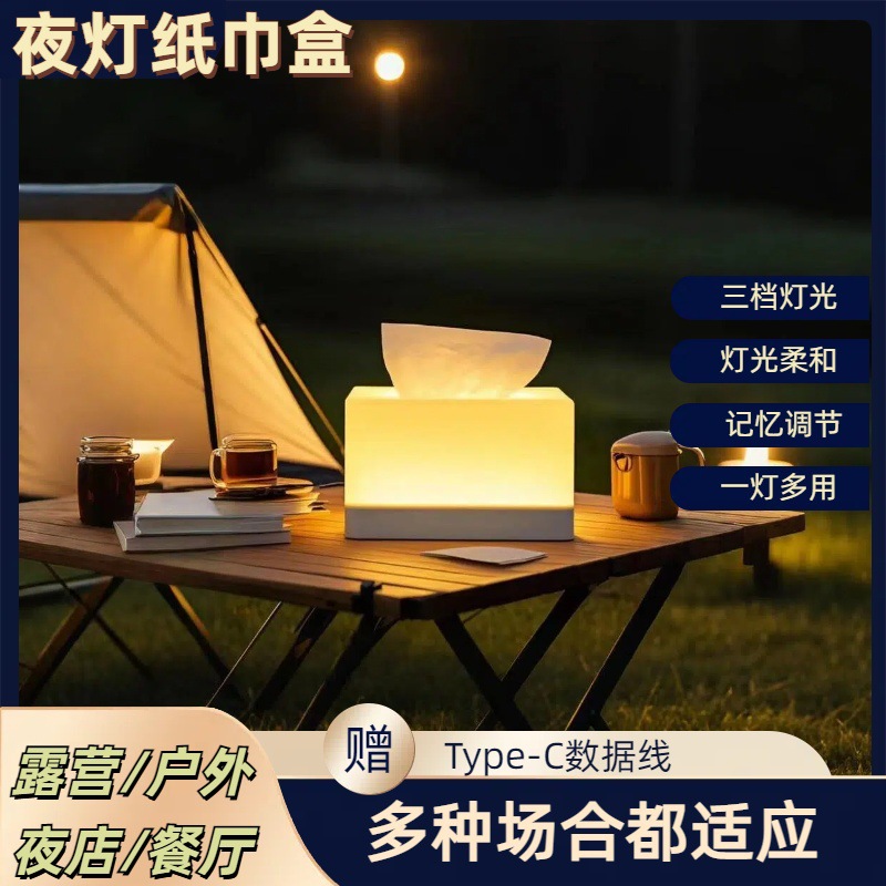 2025 new led night light tissue box 2-in-1 bedroom bedside camping stall dual-purpose charging and plug-in desktop ambience light