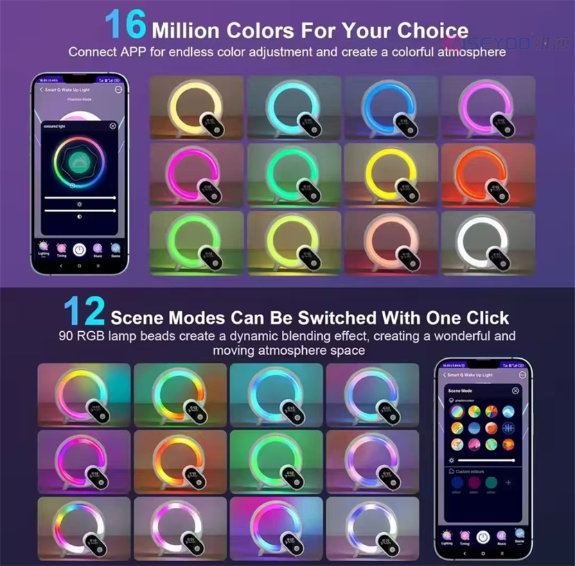 wake up light smart home phone app control alarm clock with bt speaker bedside night lights for kids room 中文版