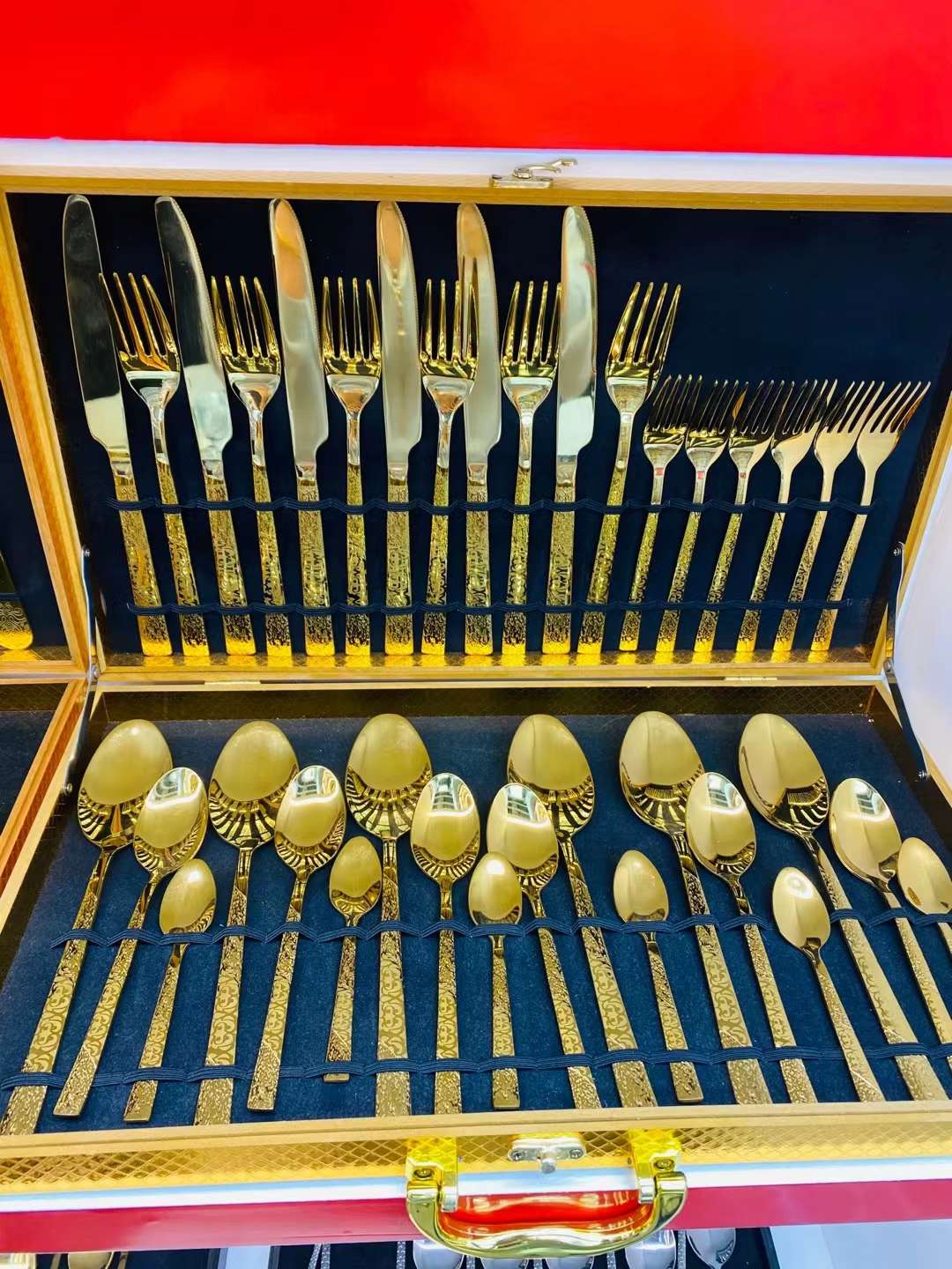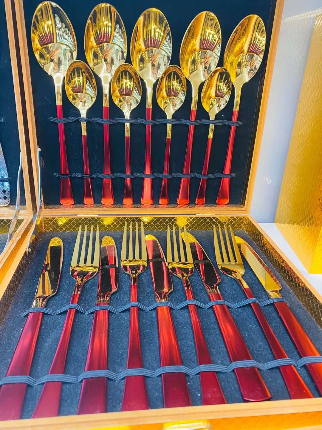 [ding yi tableware] 24-piece set of wooden box gold-plated color spoon tea spoon tea fork coffee spoon