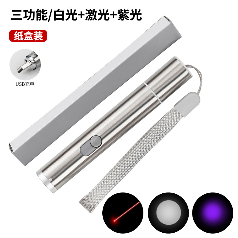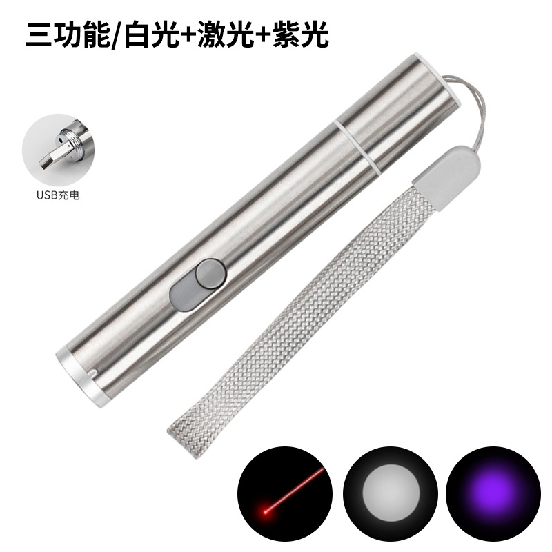rotating hidden usb charging three-in-one laser cross-border teaser toy multi-function infrared laser light