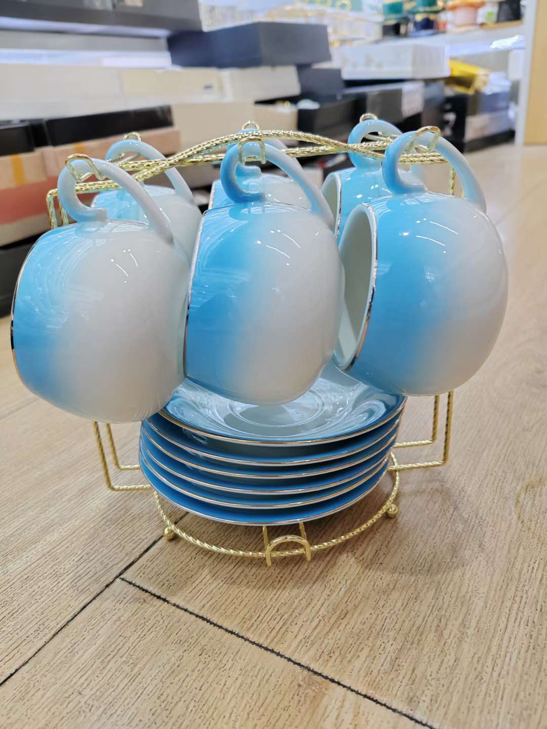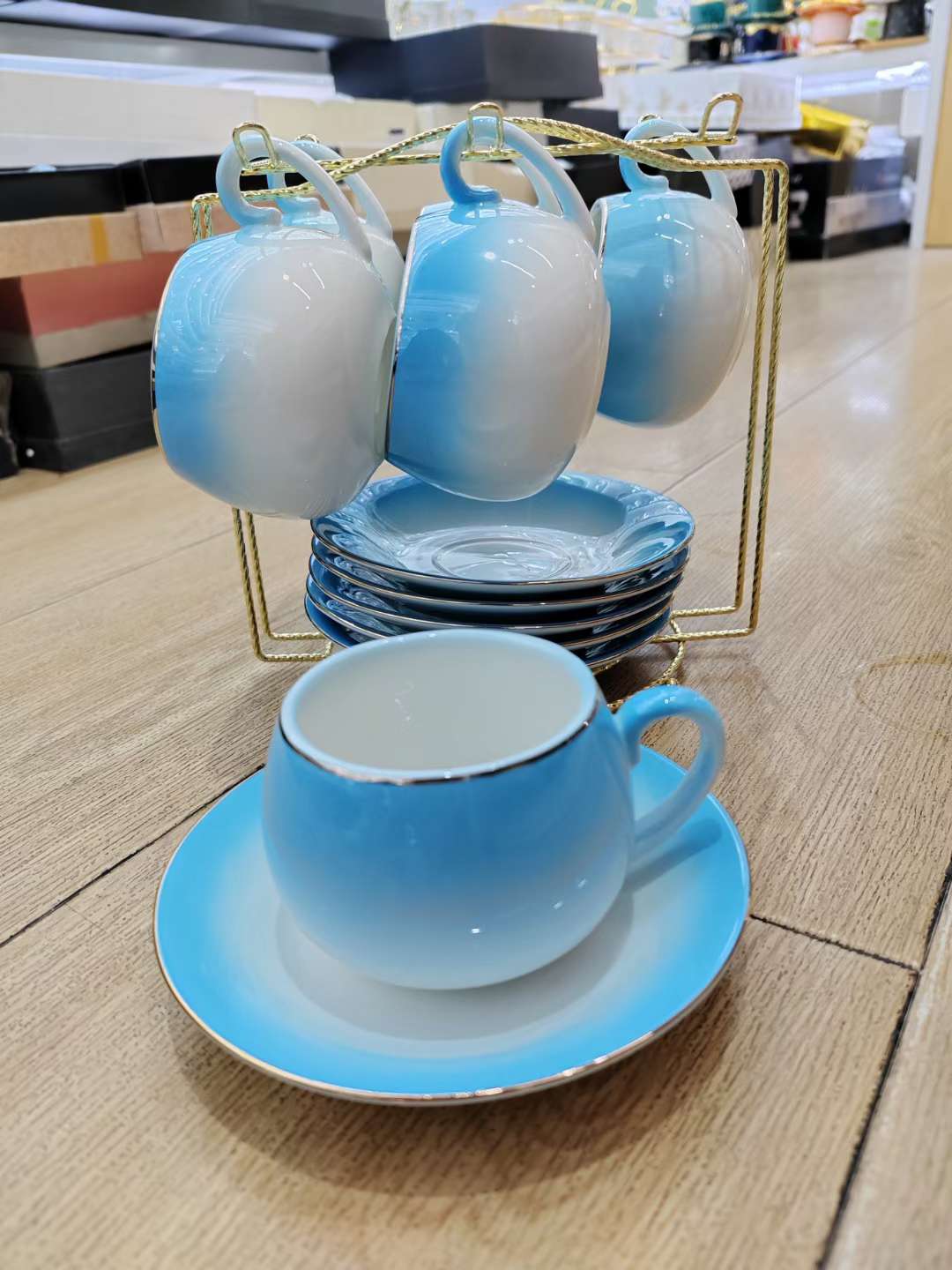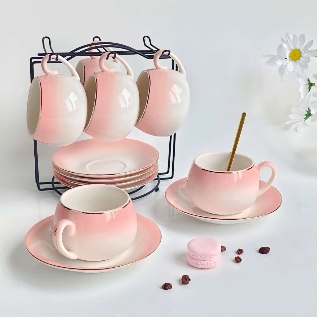 陶瓷咖啡杯套装渐变咖啡杯陶瓷杯水杯礼品咖啡具6杯6碟咖啡具套装