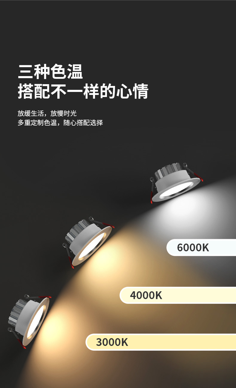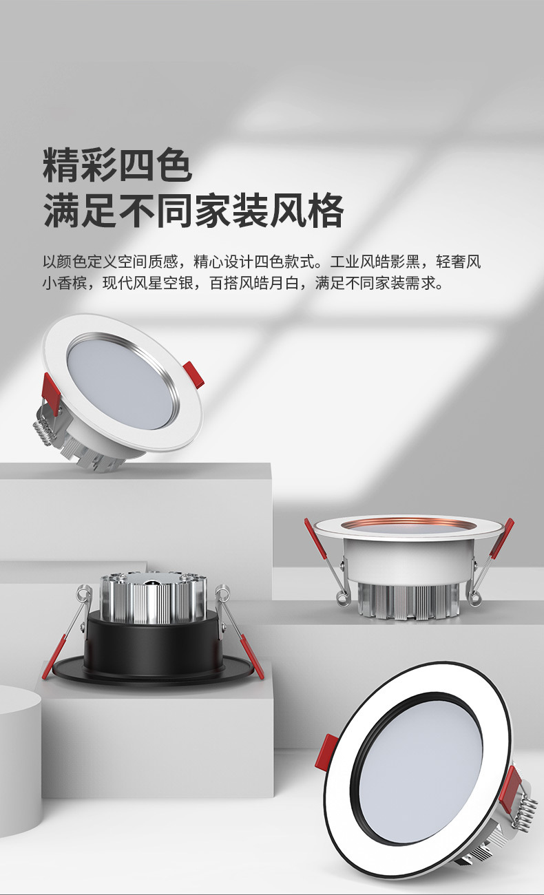 elegant black 5w three-color [luxury all aluminum] hole 6.5-8.5cm