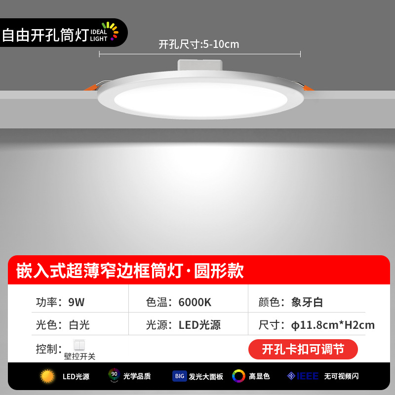 ultra-thin round downlight [4-inch 9w white light] hole 5-10cm