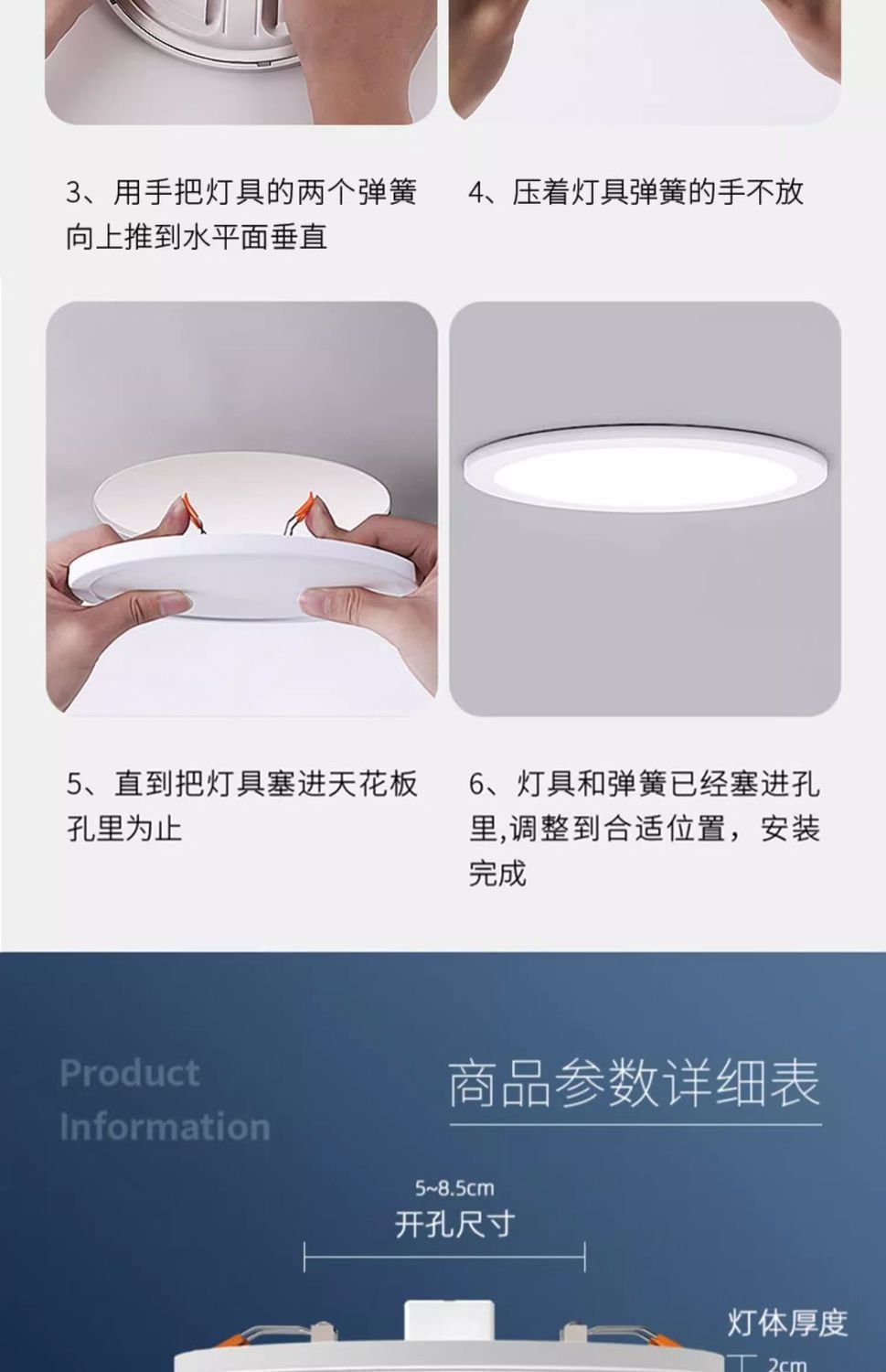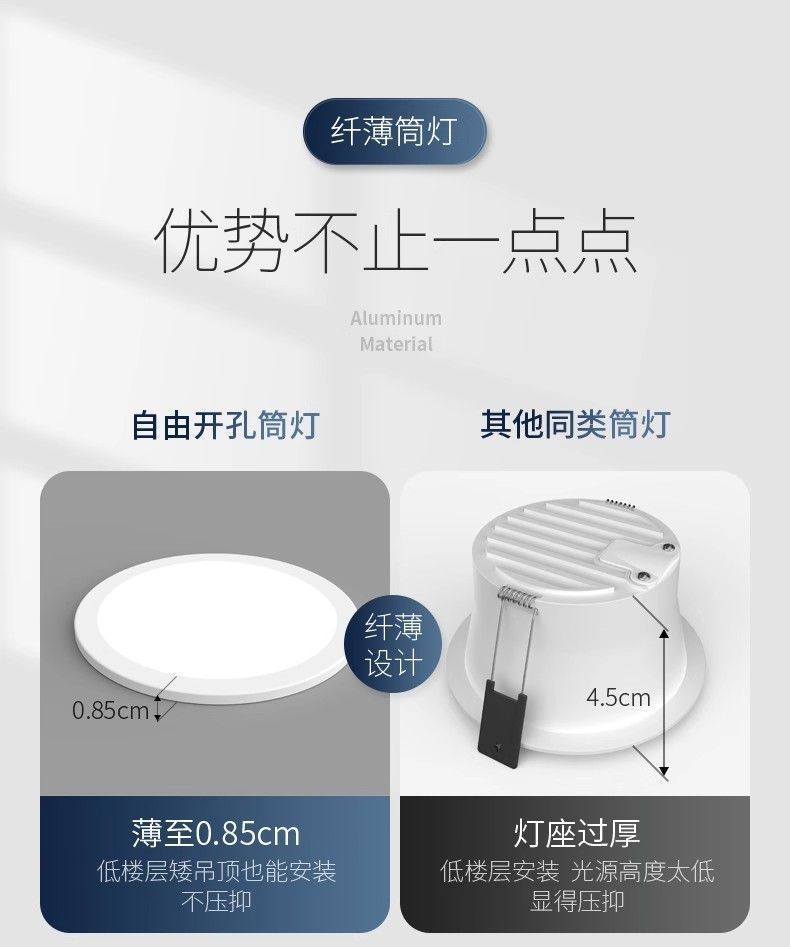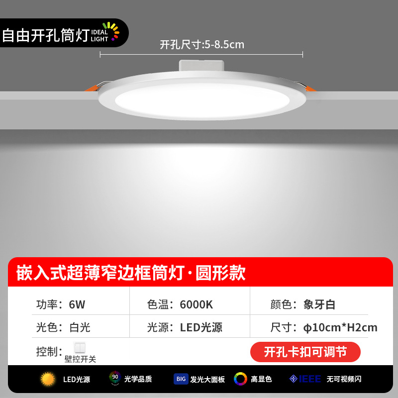 ultra-thin round downlight [3-inch 6w neutral light] hole 5-8.5cm