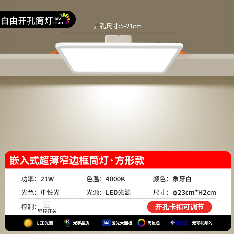 ultra-thin square downlight lamp [8-inch 21w neutral light] hole 5-21cm