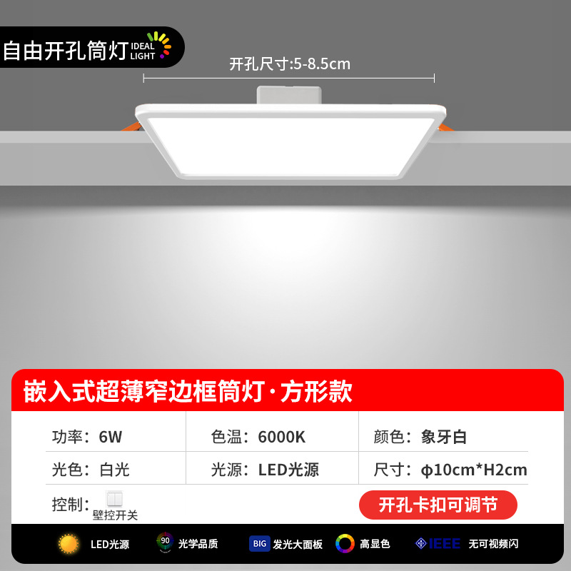 ultra-thin square downlight lamp [3-inch 6w white light] hole 5-8.5cm