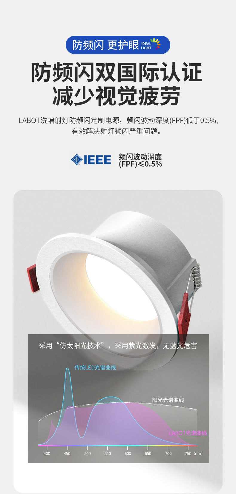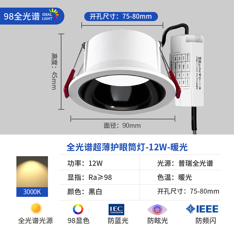 full spectrum white cup [low blue light]/12w/drilling 75-80mm/white light 6000k
