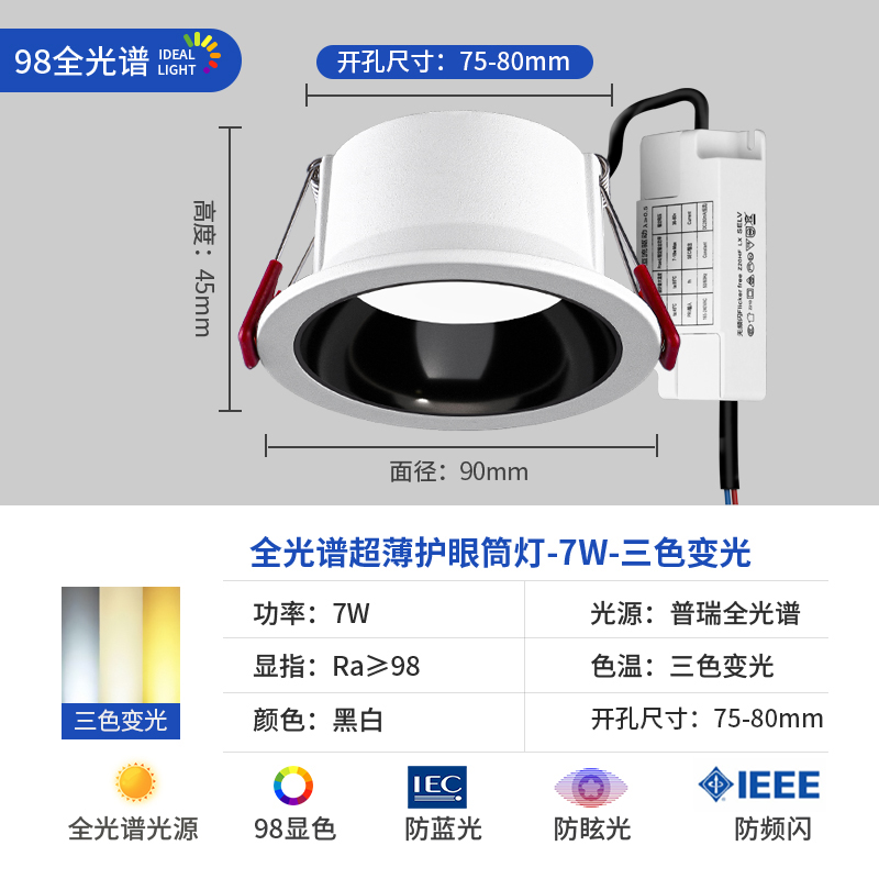 full spectrum white cup [low blue light]/7w/drilling 75-80mm/white light 6000k