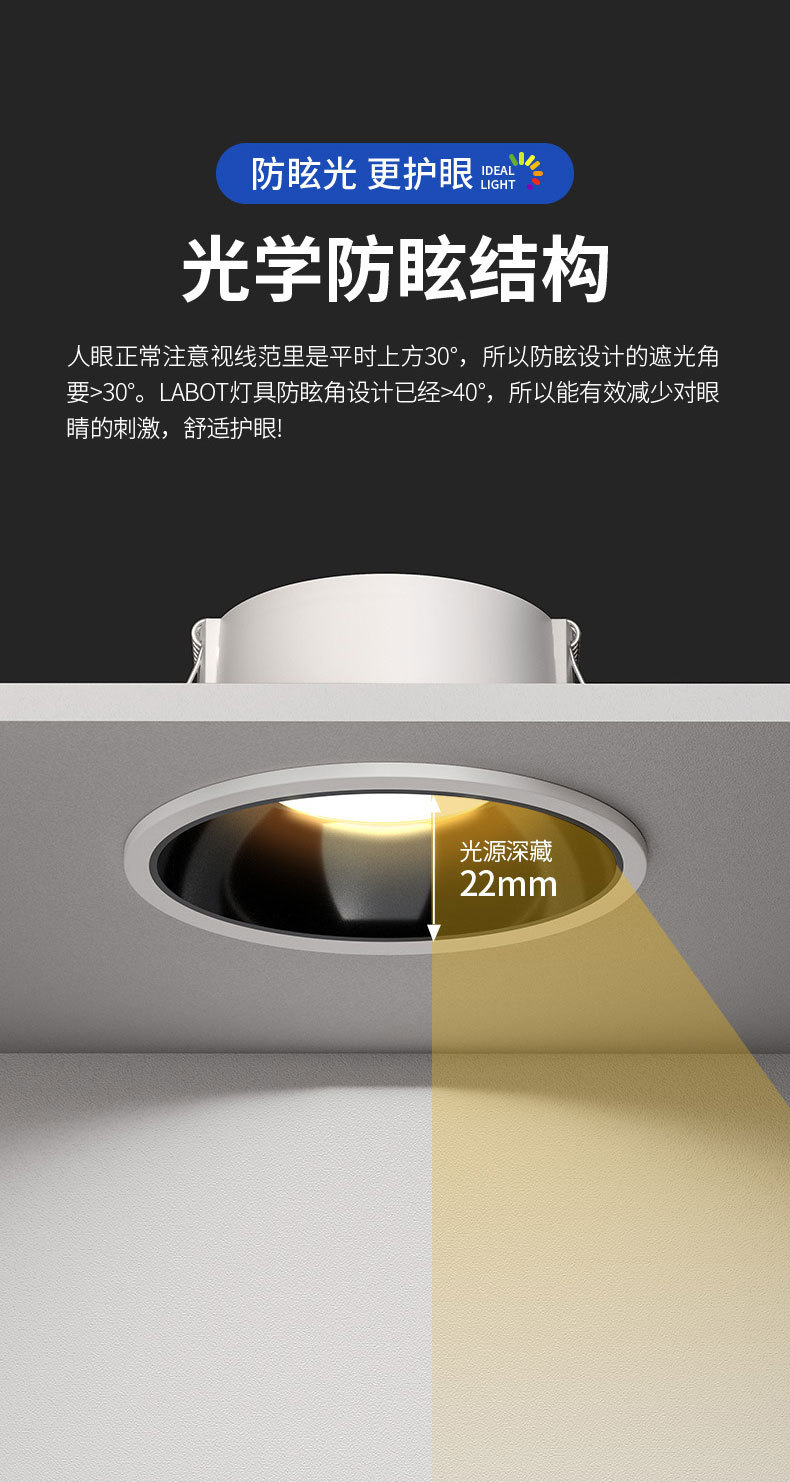 full spectrum black cup [low blue light]/7w/drilling 75-80mm/warm light 3000k