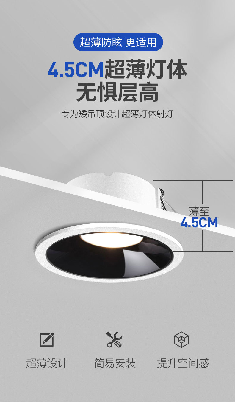 full spectrum black cup [low blue light]/12w/drilling 75-80mm/shallow warm 3500k