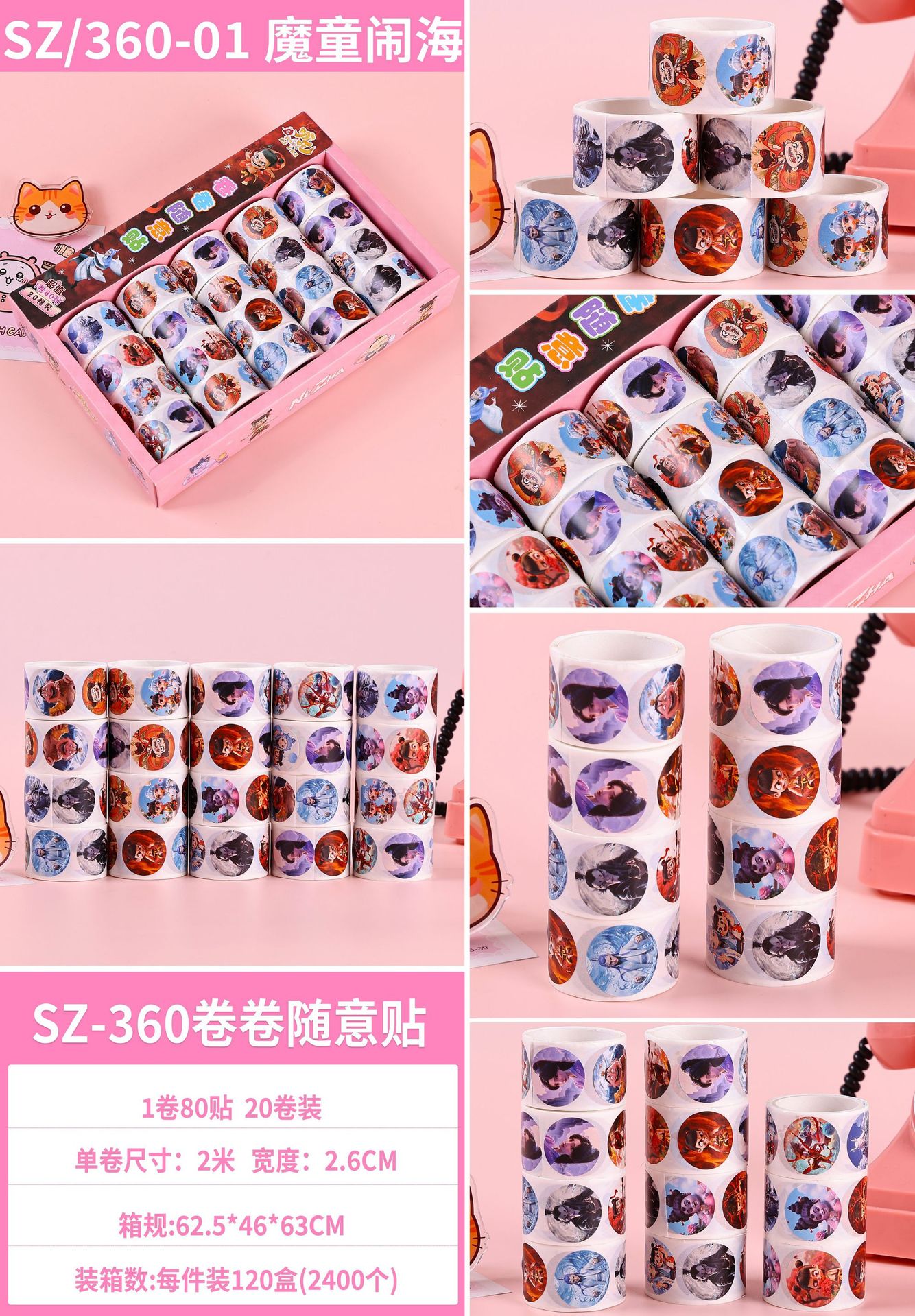 SZ/360 roll of tape, 80 stickers per roll, 2 meters per roll, width 2.6 cm, a box of 20 rolls, a piece of 120 boxes (2400 pieces)