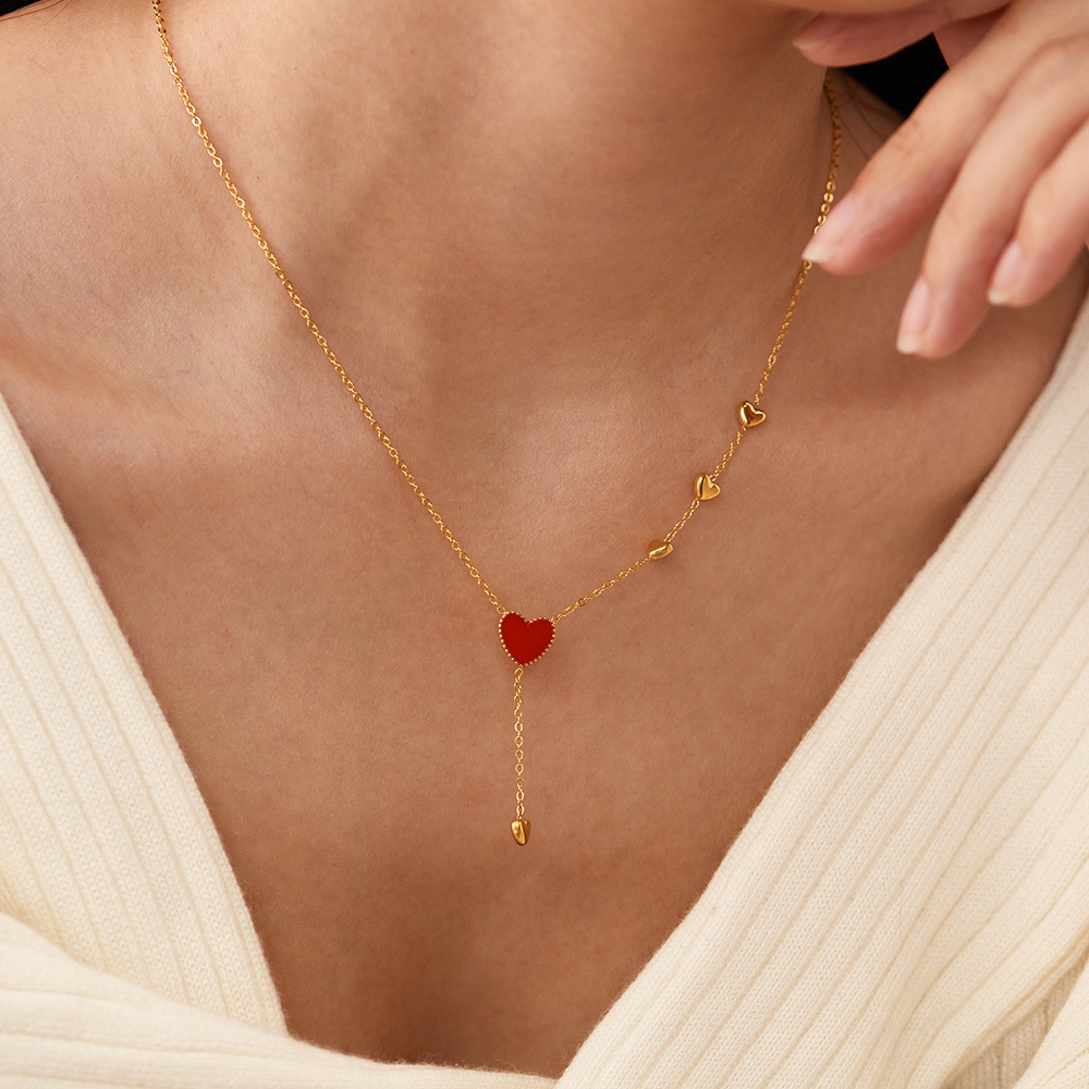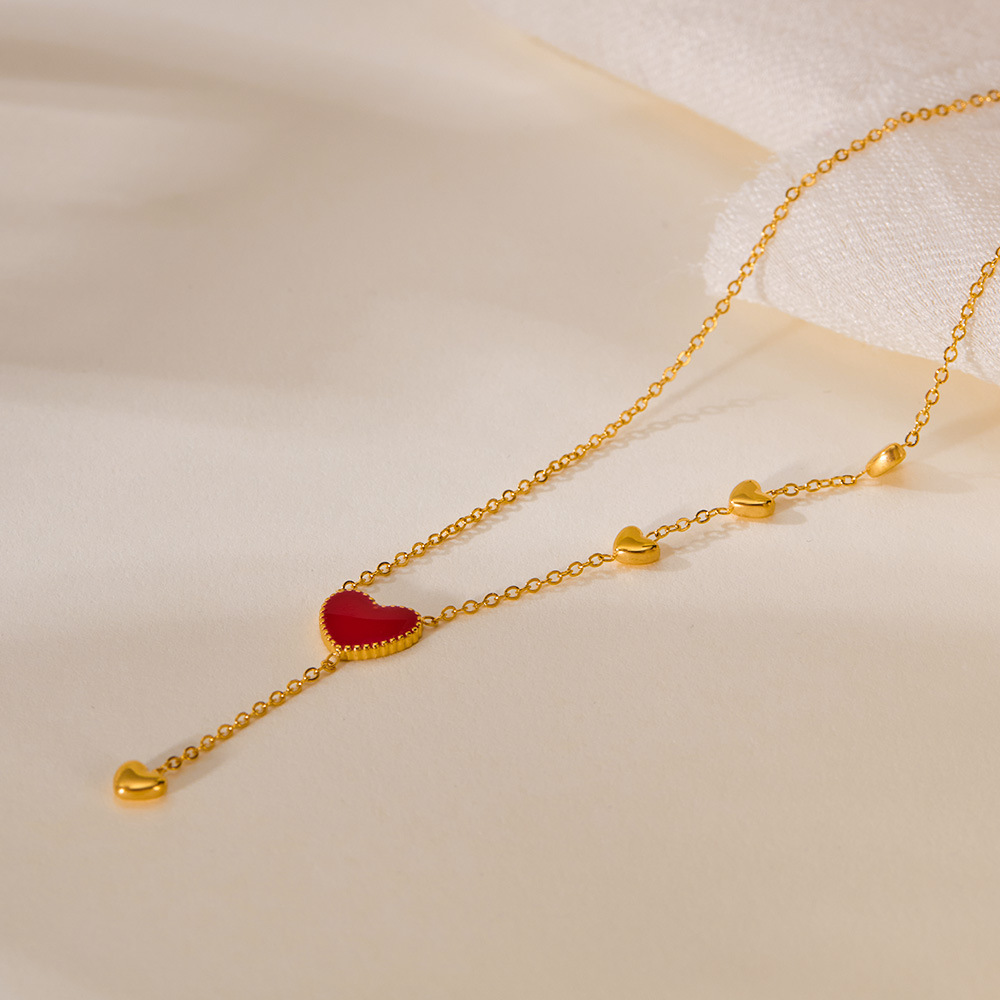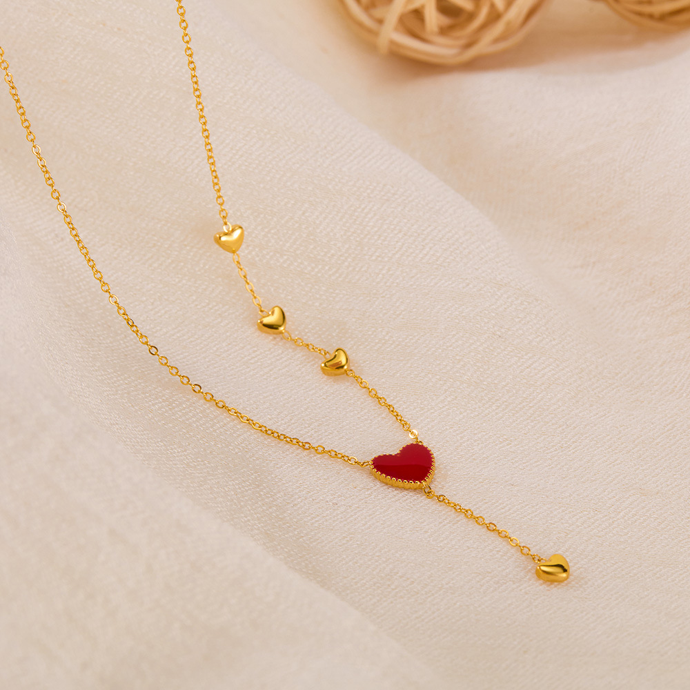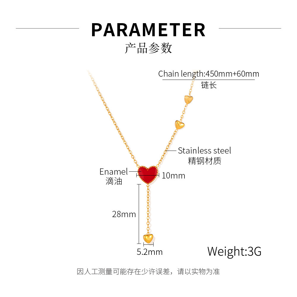new love drop oil tassel titanium steel necklace for women personality fashion trend all-match stainless steel ornament 中文版