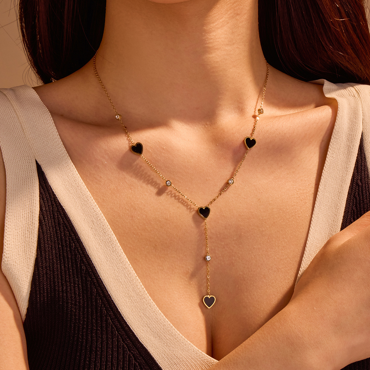 european and american entry lux niche necklace high-grade tassel heart clavicle chain stainless steel necklace for women 中文版