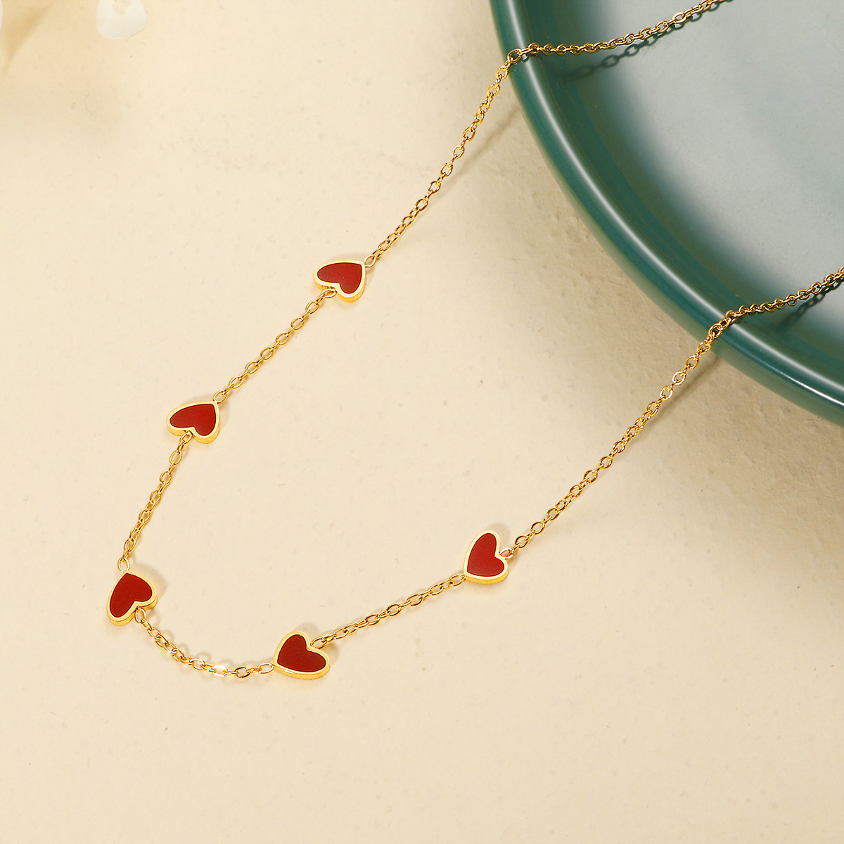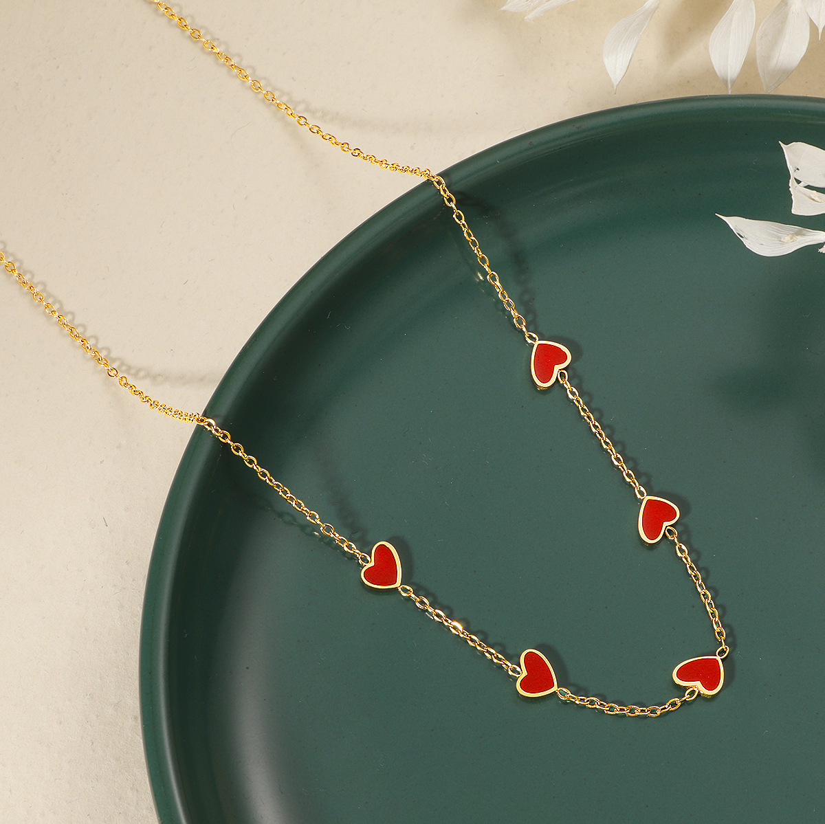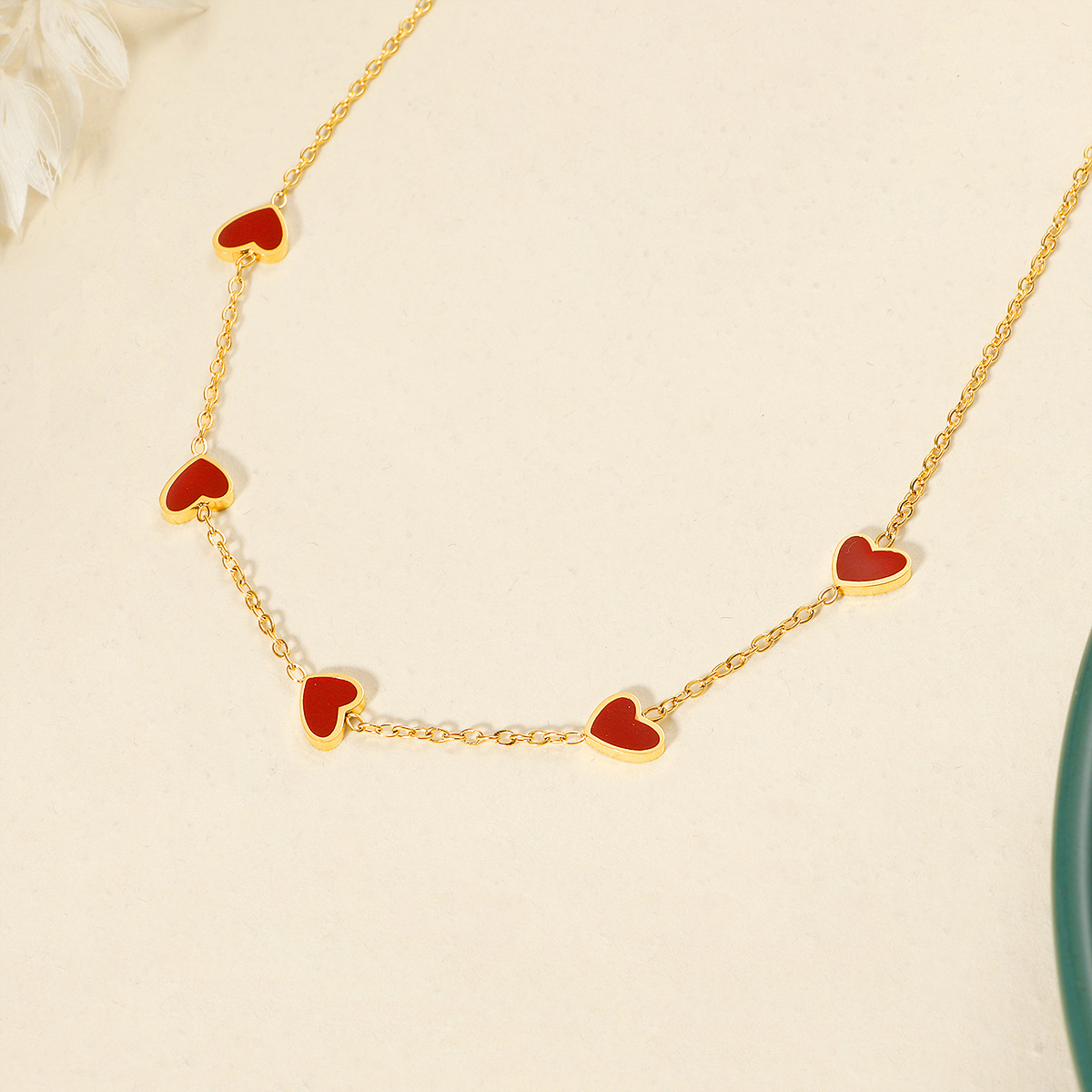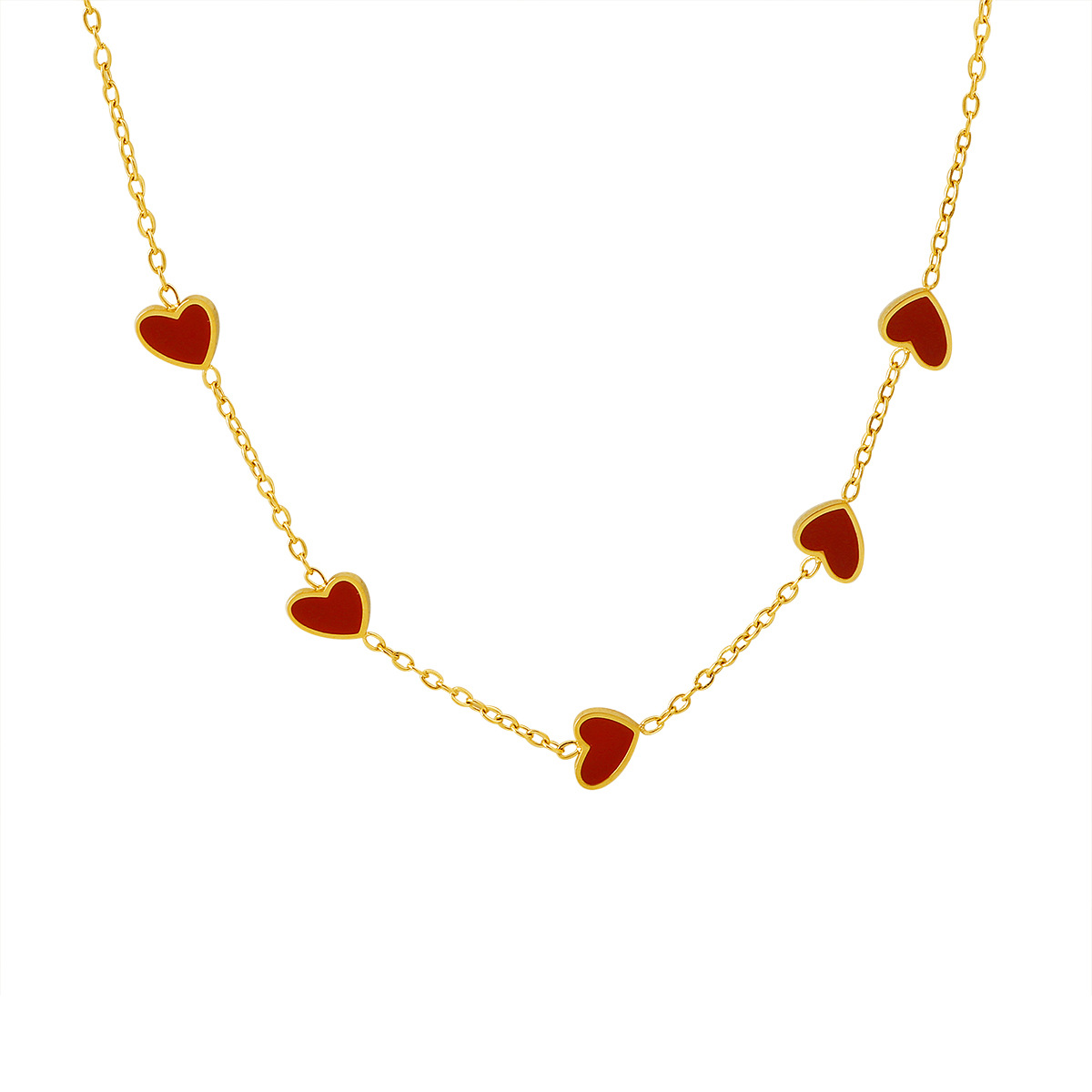 french style oil dripping red heart necklace female titanium steel 18k gold plating non-fading commuter niche necklace 中文版