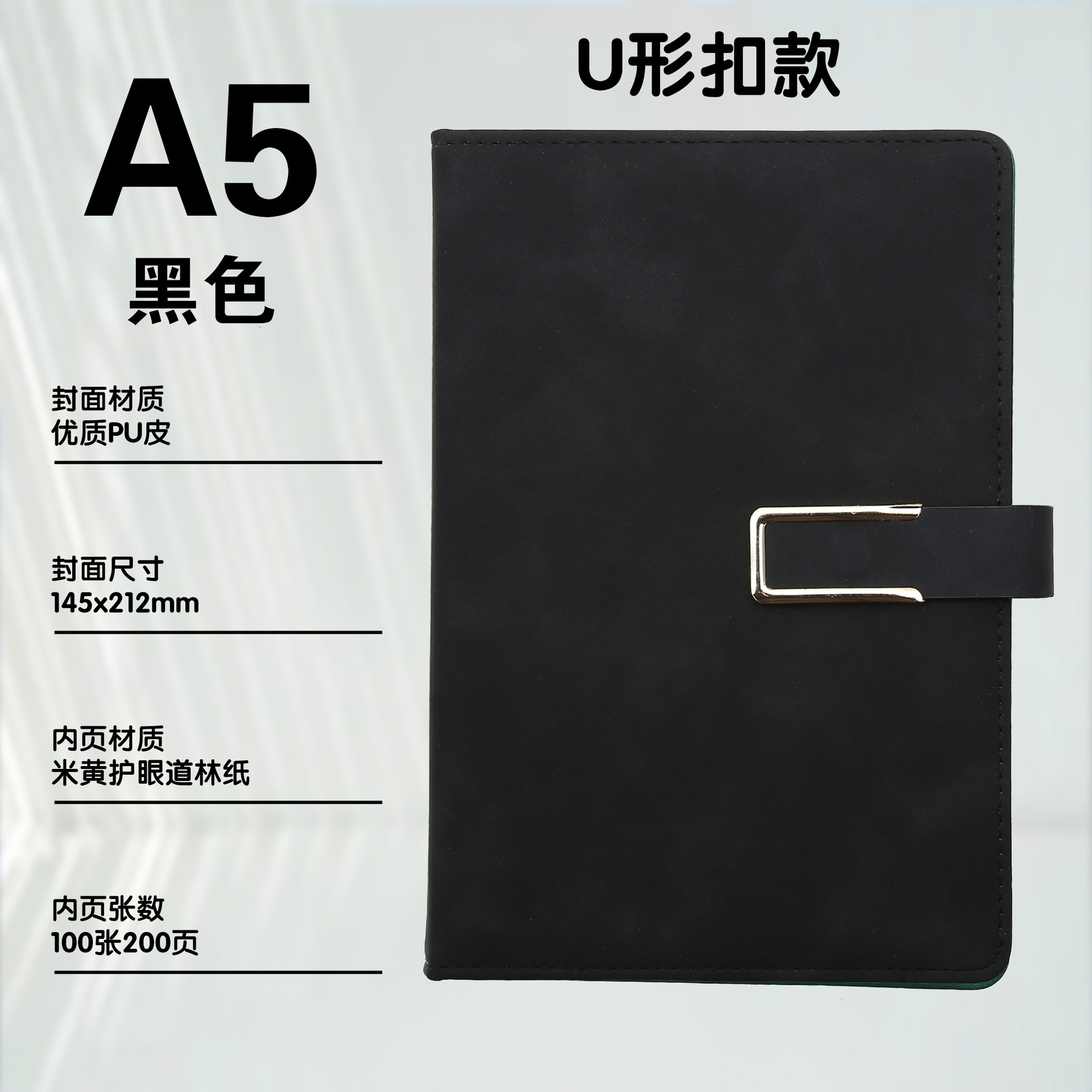 soft leather notepad-single packing-black 100 sheets