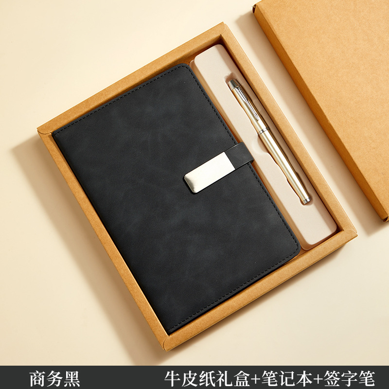 business black/kraft paper gift box + metal pen