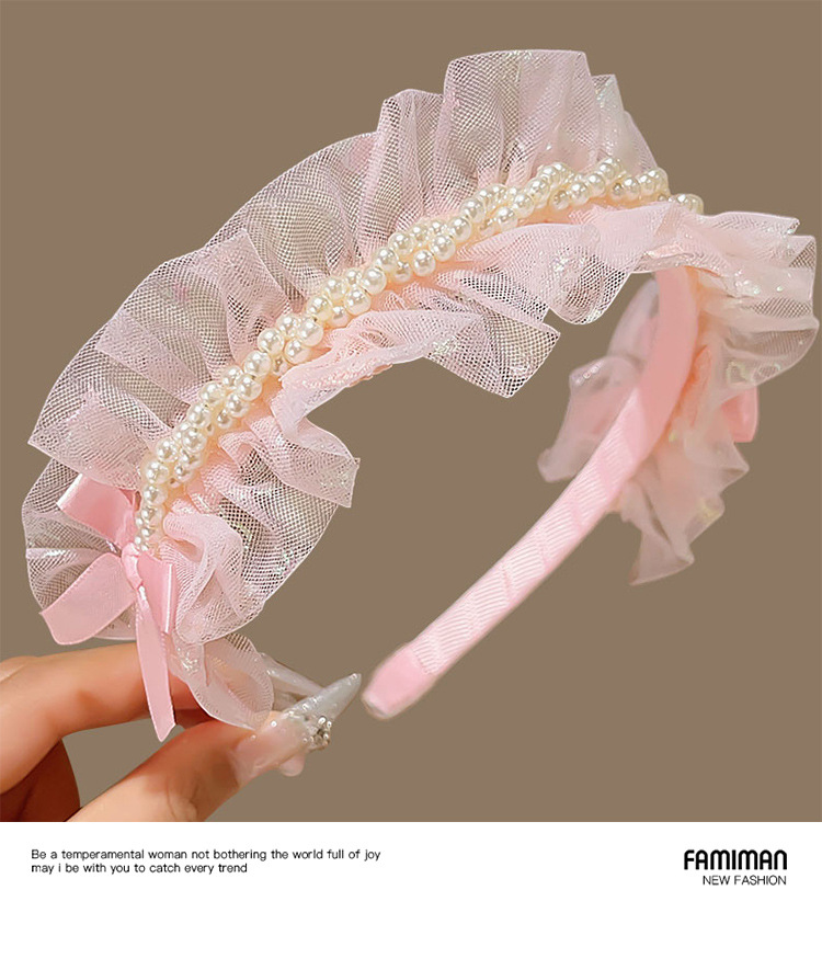 pink mesh pearl headband