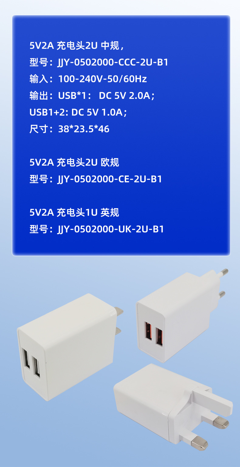 | dual port (usb-a) 5v2a 10w european regular head-bare metal | ¥5.89 | 6160 piece available |