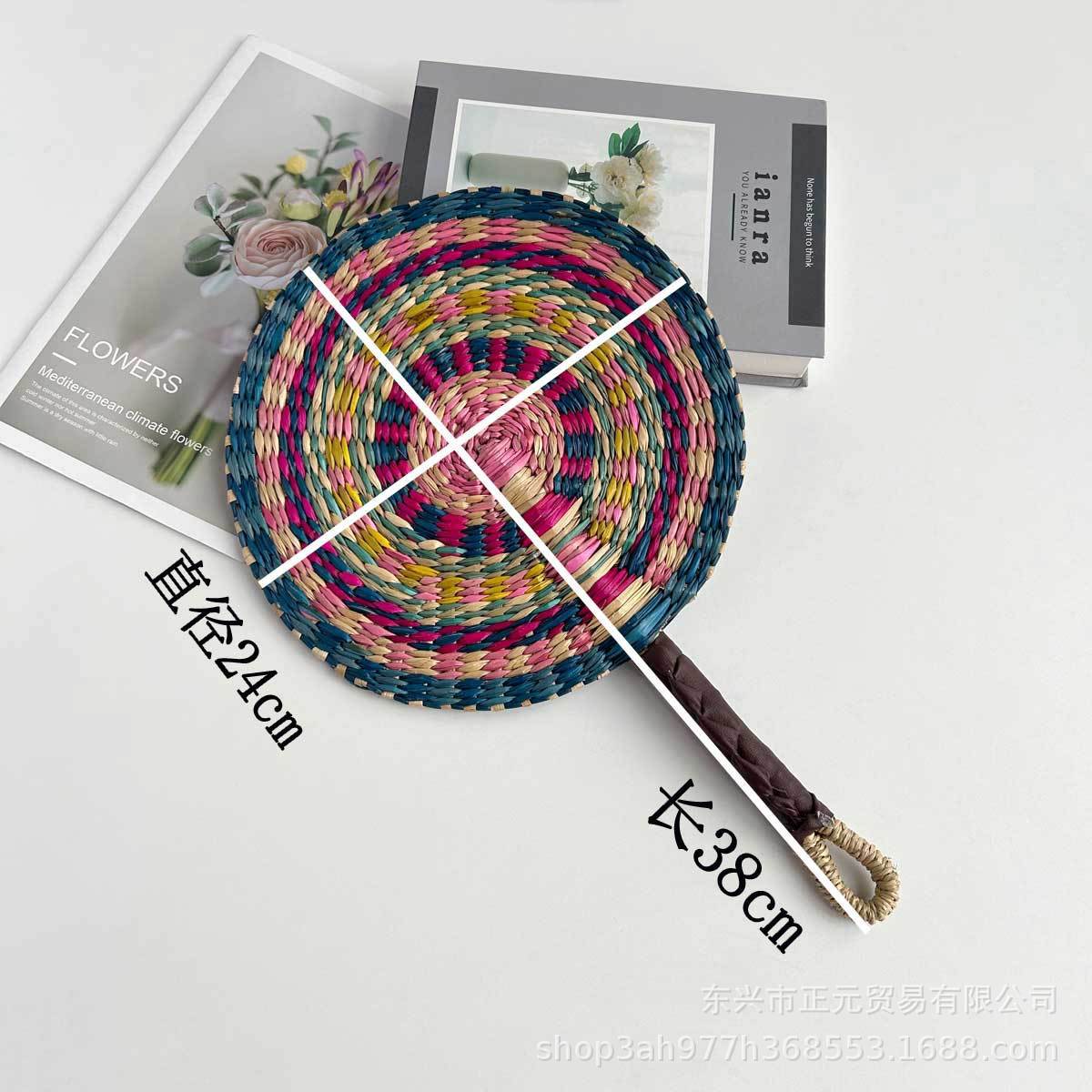 colorful original handle-round straw fan