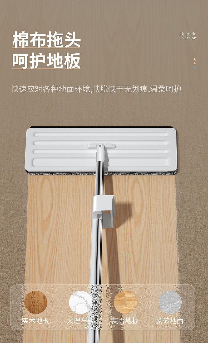 | [45cm] hand-free flat mop-6 pieces of cloth in total | CN¥ 22.94 | 49996 piece available |
