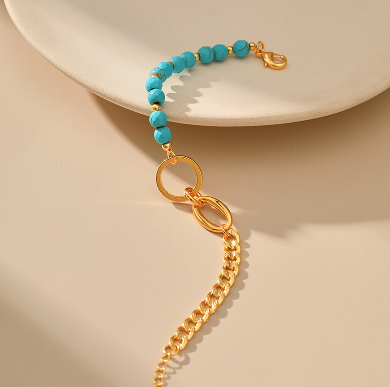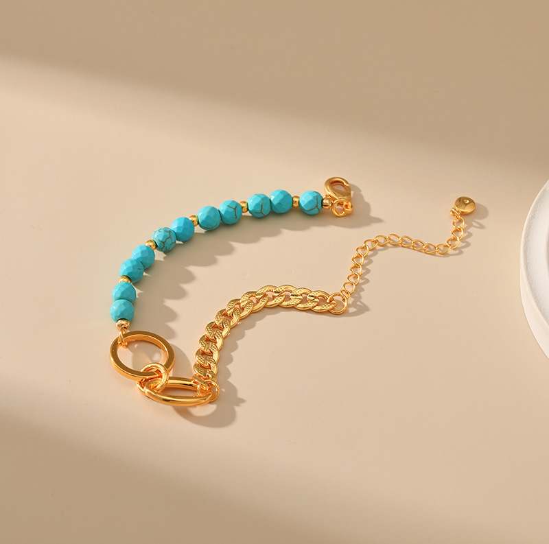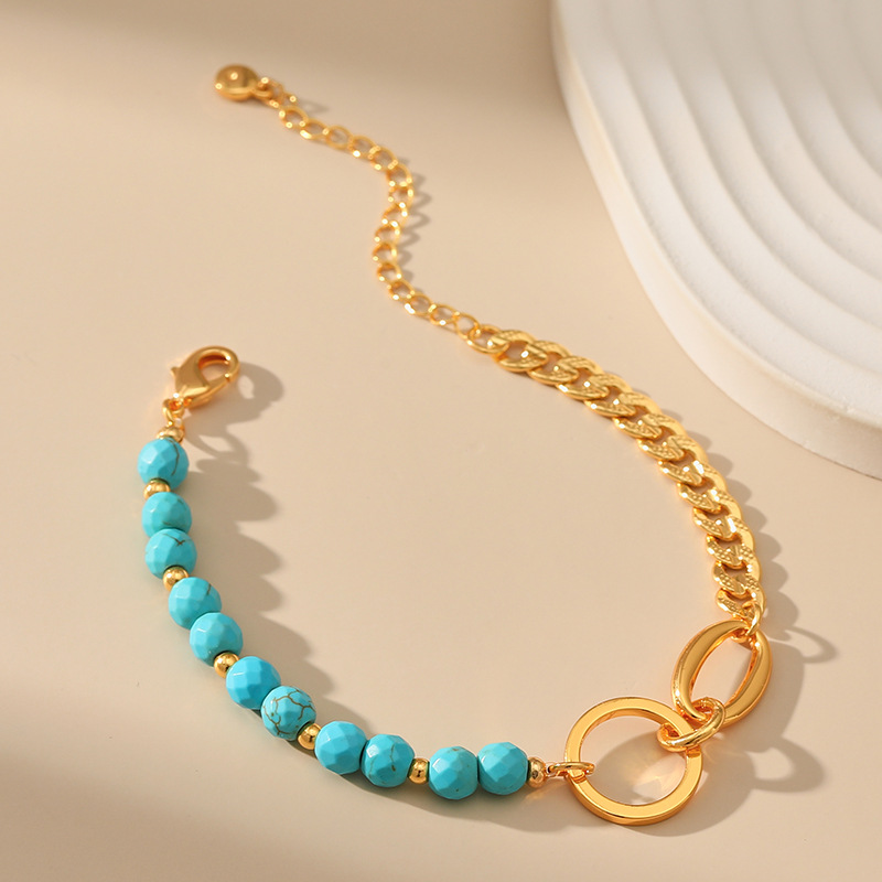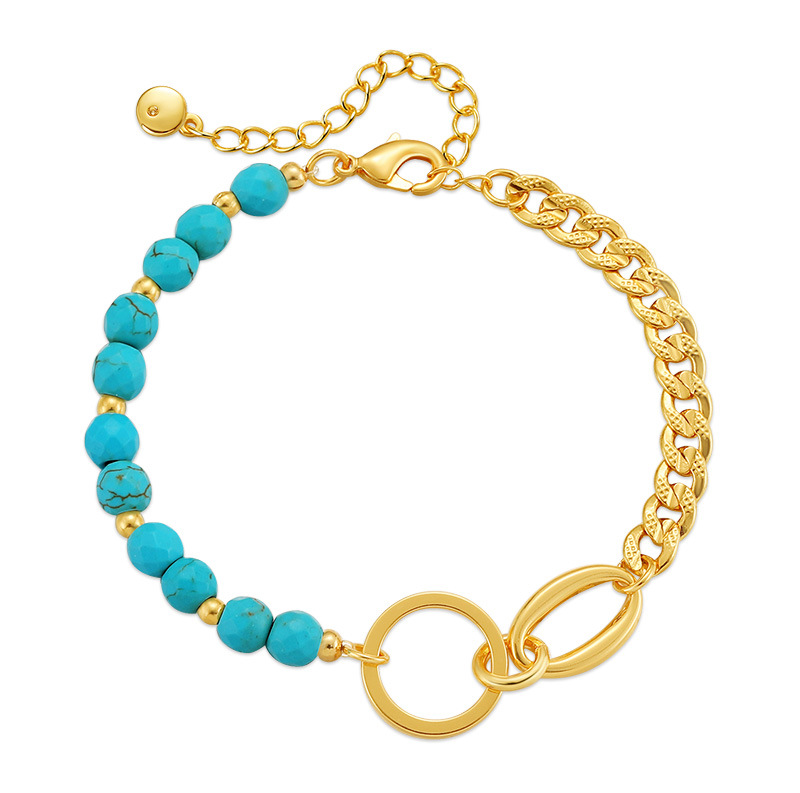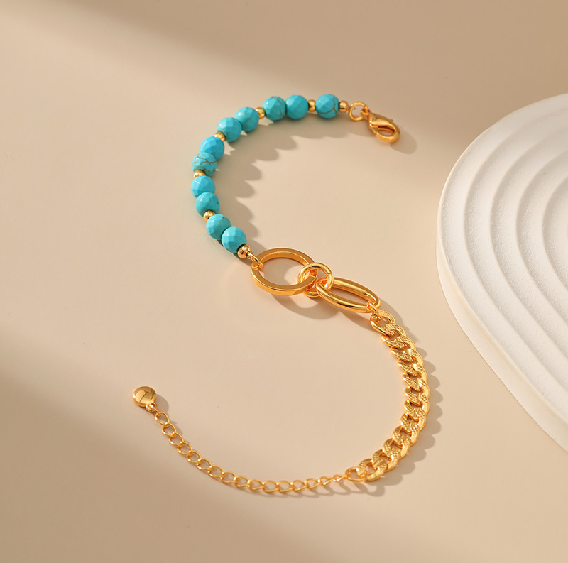 fashion personality turquoise titanium steel bracelet 18k gold plating stitching chain ring stainless steel ornament 中文版