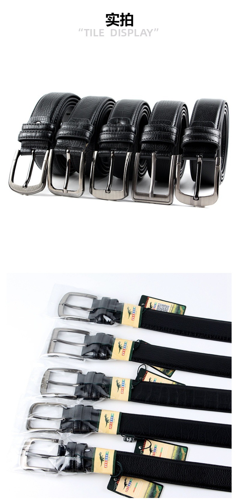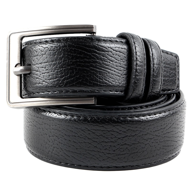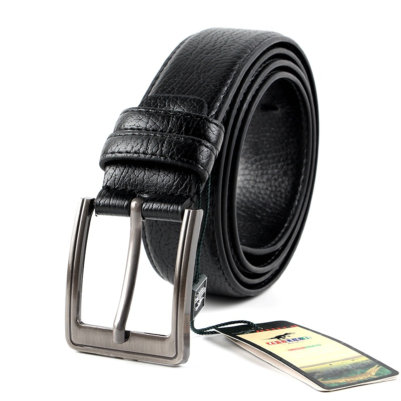 2024 New Arrivals: Men's Pure Super-leather Pin-Buckle Belt, Pin-Buckle Head Styles Randomly Distributed, With Horizontal Label and Three Holes, 12 Belts per Box, Five Patterns, Durable and Sturdy