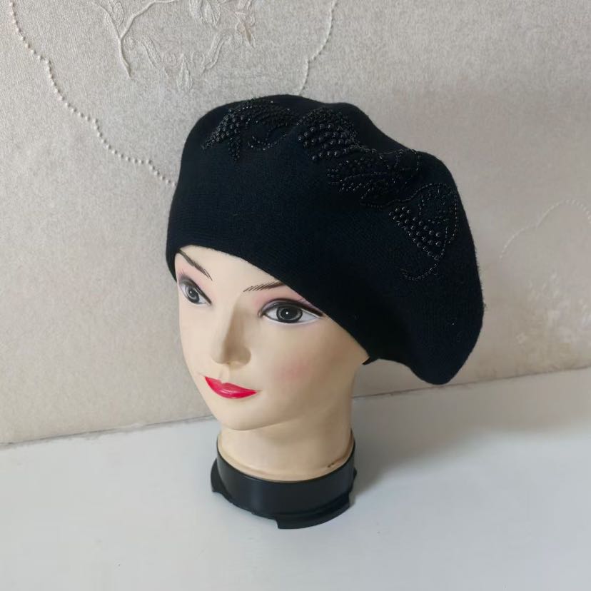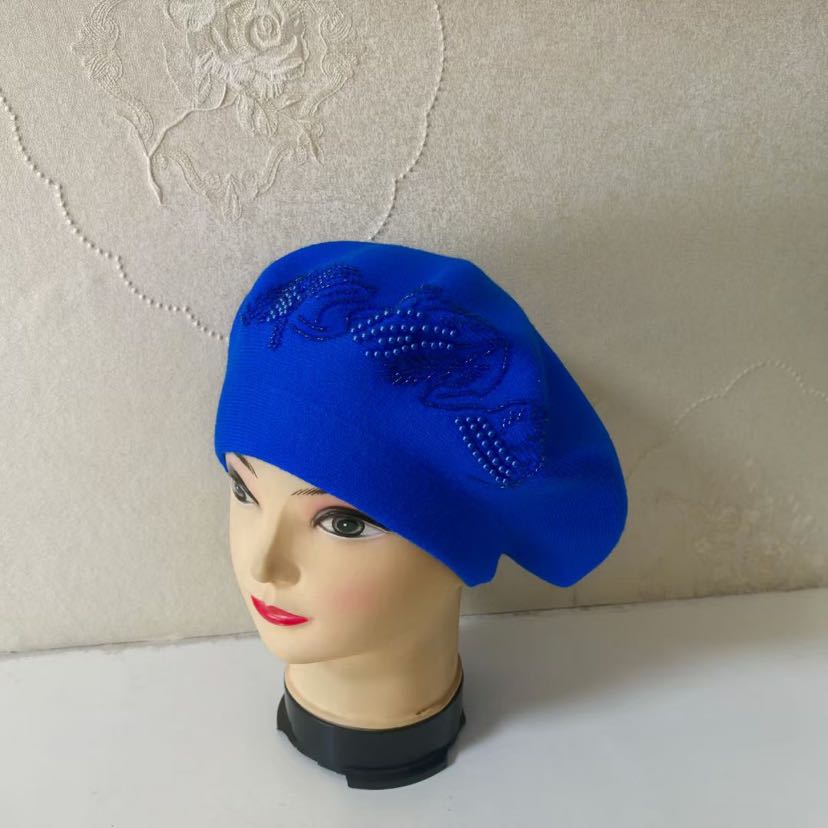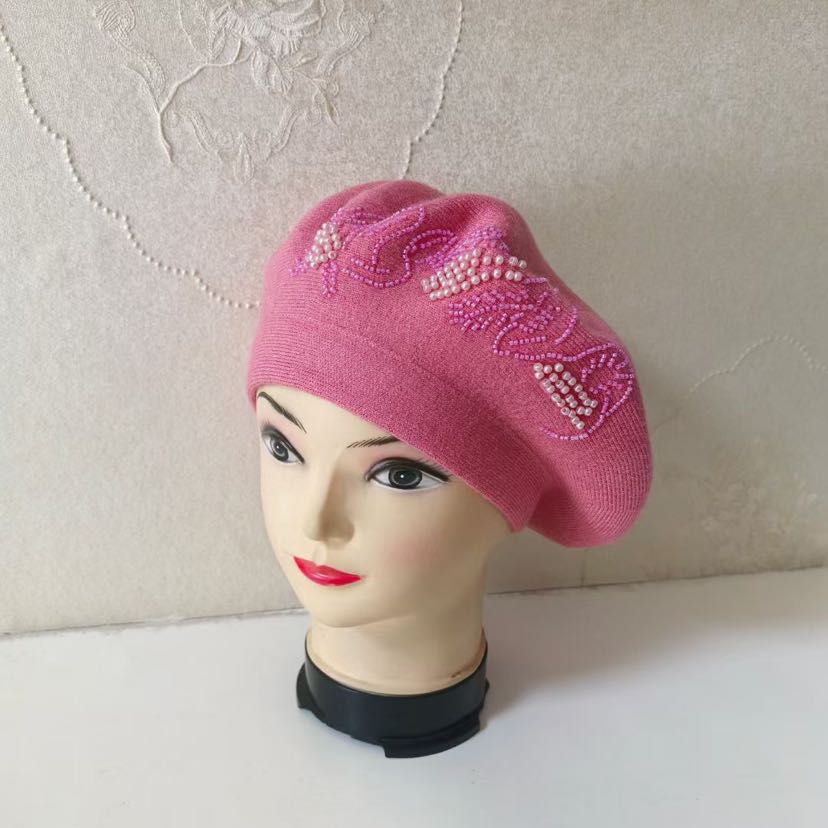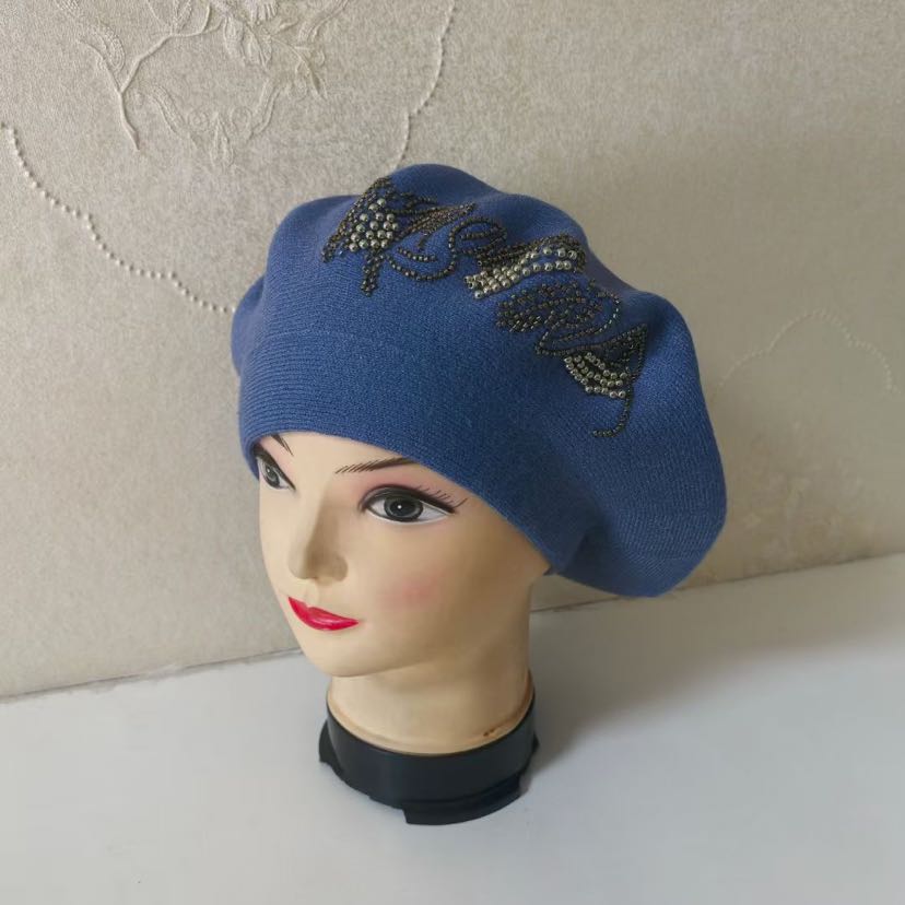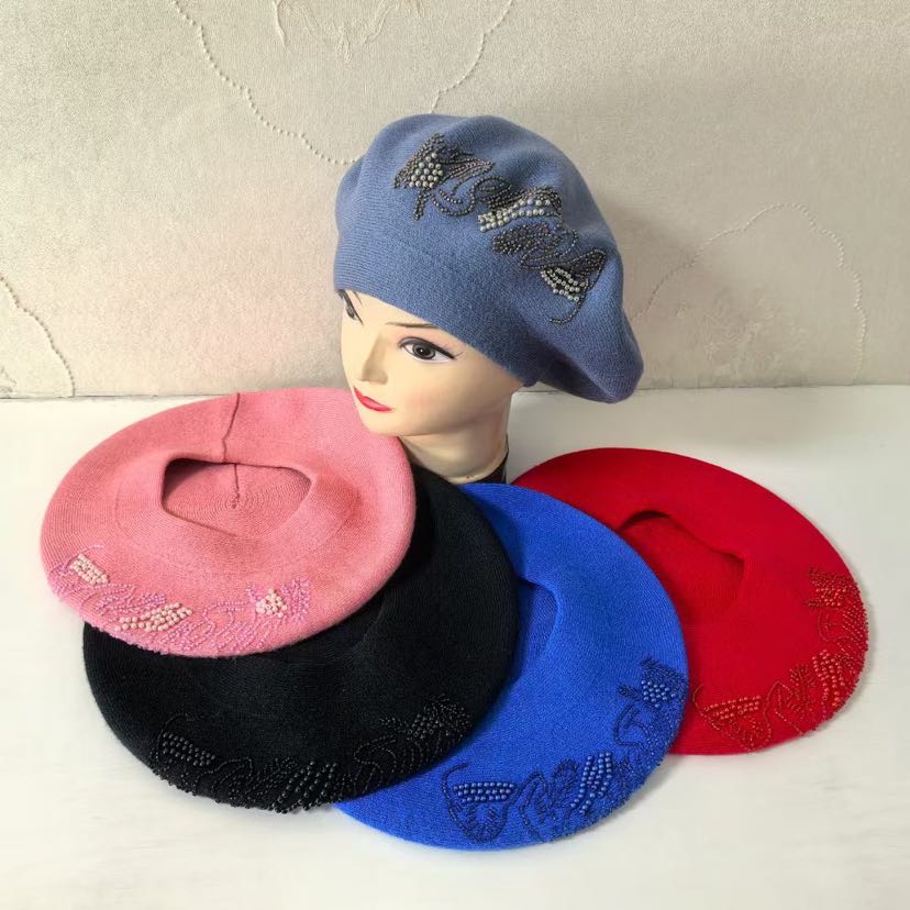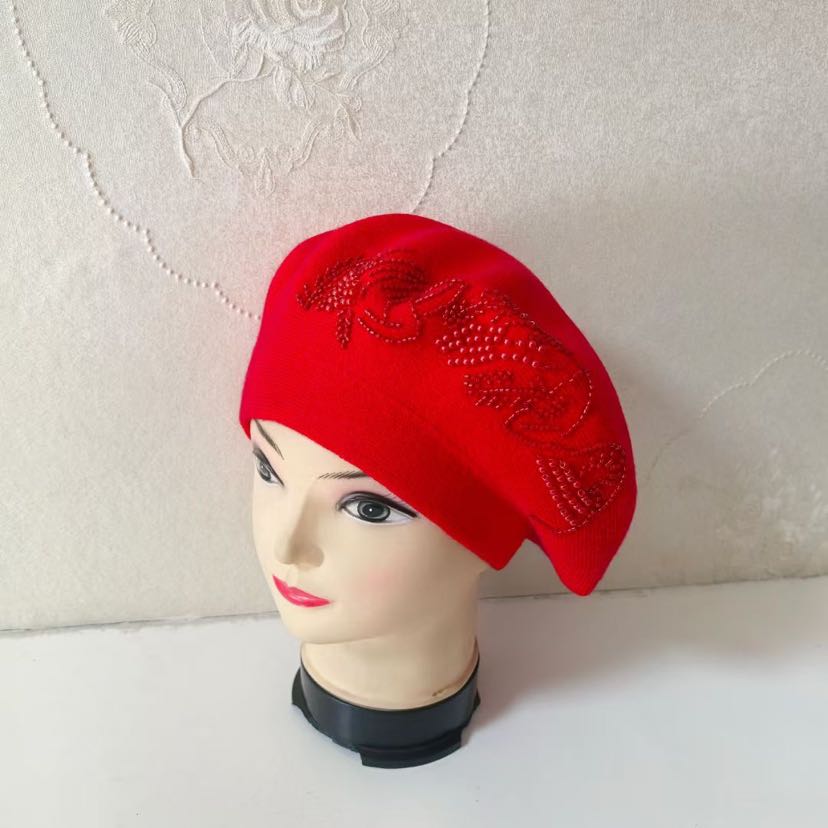 cross-border foreign trade new handicraft cashmere beret embroidered knitted hat women's middle-aged cap fashion girl's cap 中文版