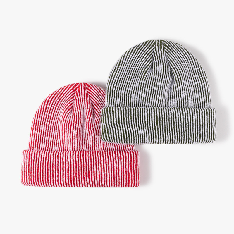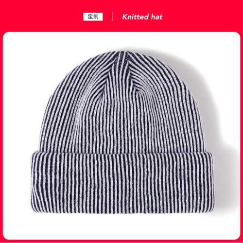 customized processing knitted hat foreign trade cross-border striped jacquard woolen cap autumn and winter outdoor keep warm beanie hat customizable logo 中文版