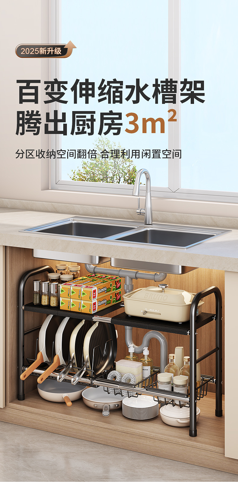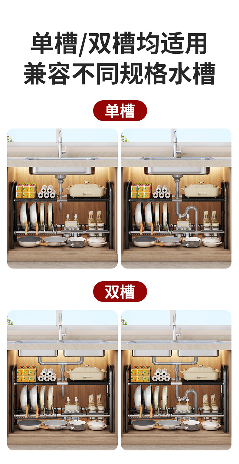 black double layer 2 baskets 4 plates 1 pot lid rack