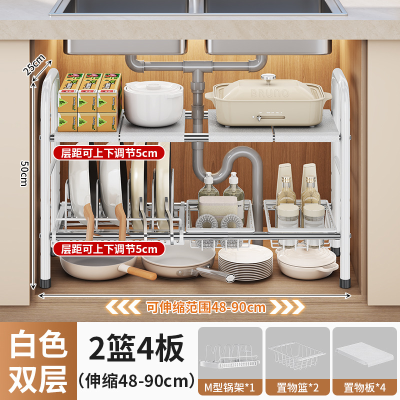 white double layer 2 baskets 4 plates 1 pot lid rack