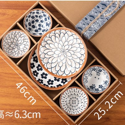 4 bowls, 2 plates-japanese style case-tengbian