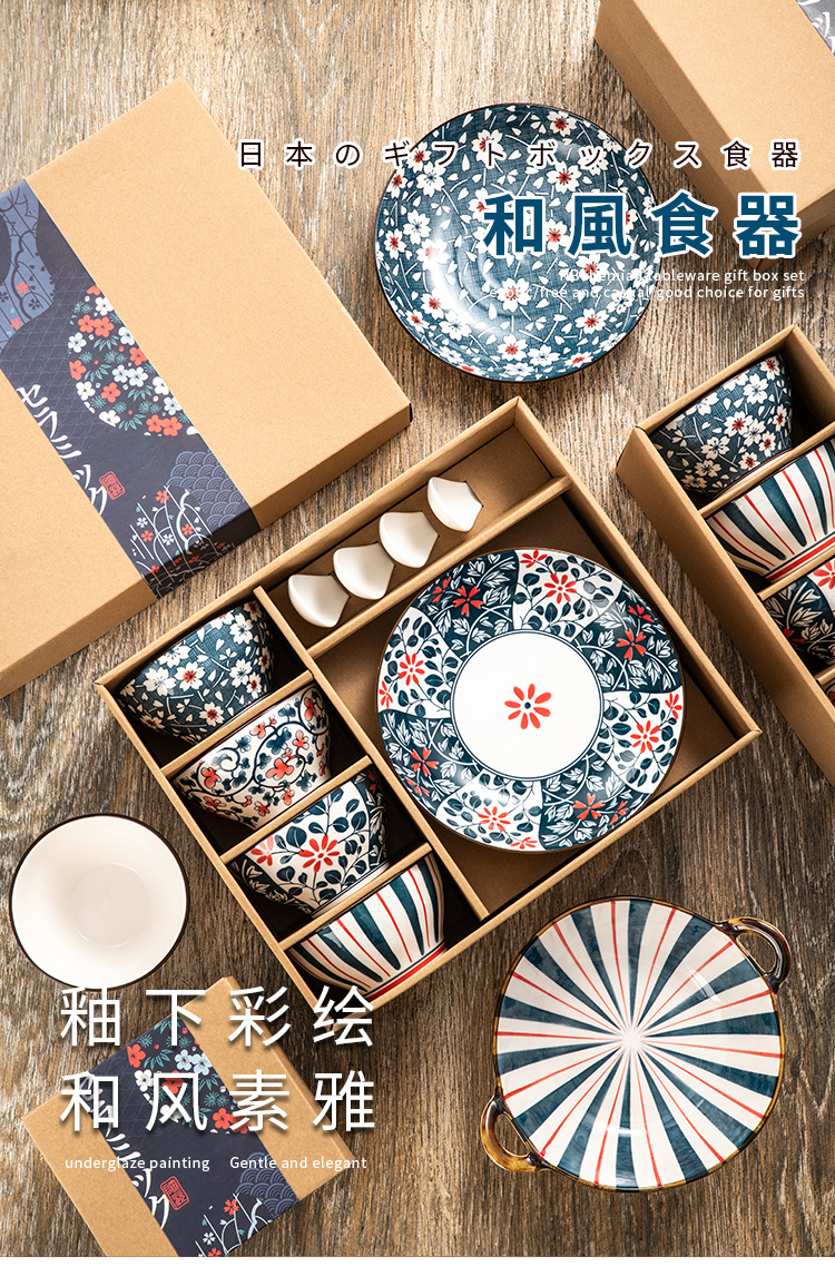 4 bowls, 4 spoons, 4 chopsticks, 2 plates-japanese style case-tengbian