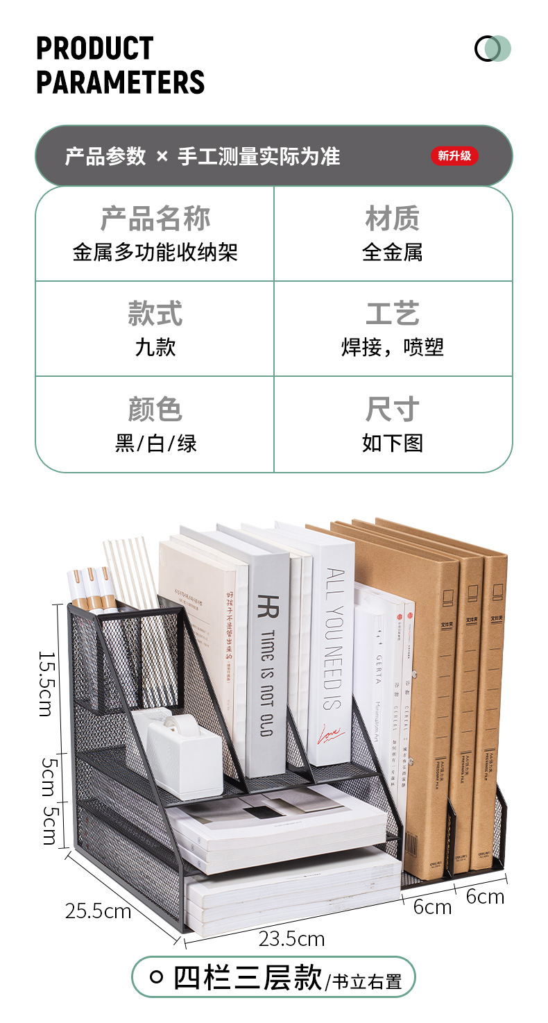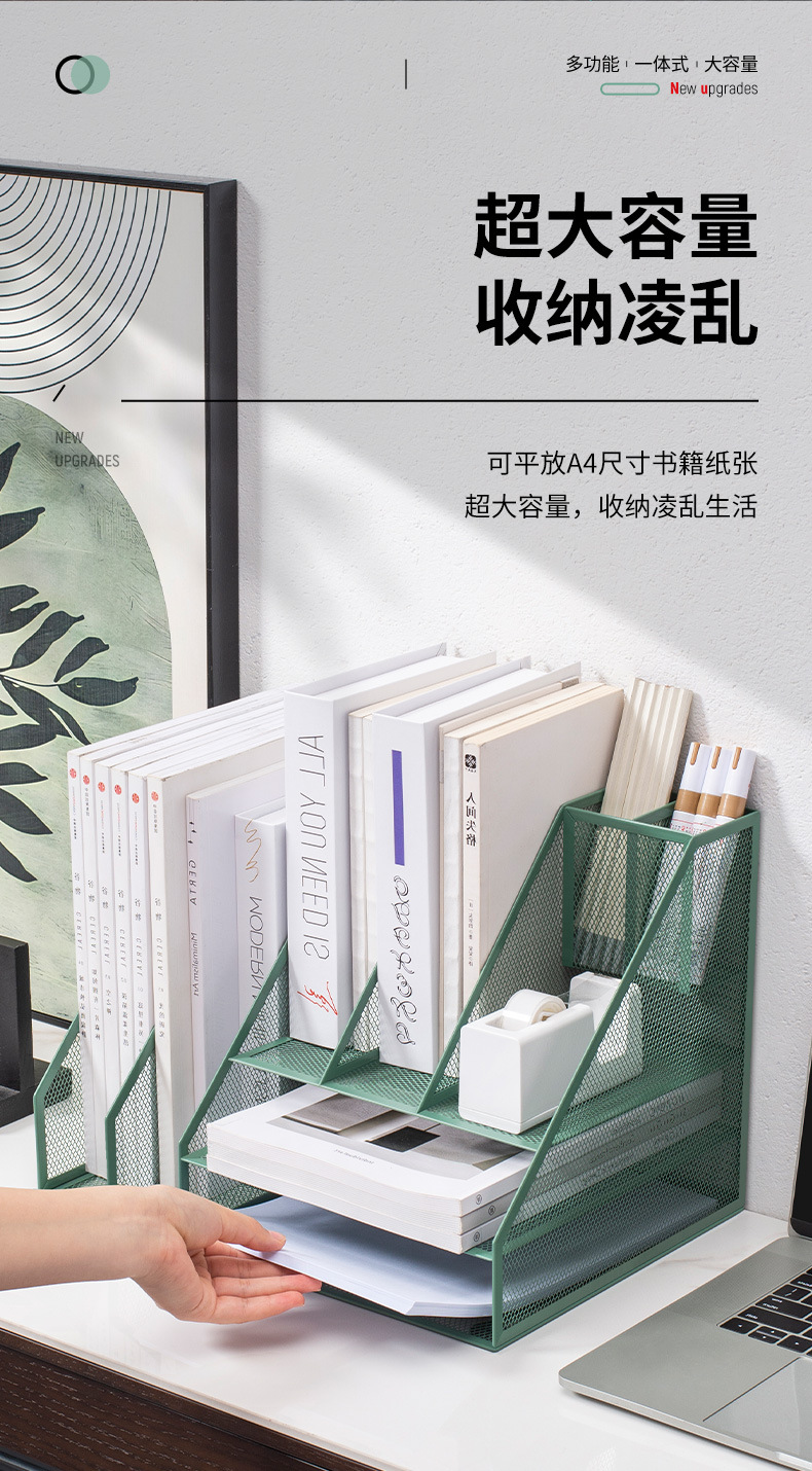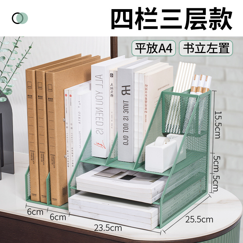 flat a4 book stand/green (three-column three-layer left pen holder)