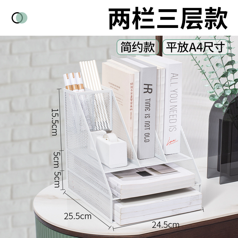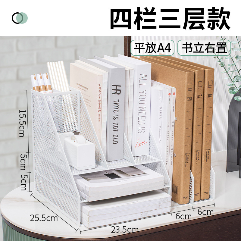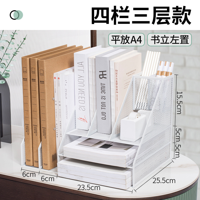 flat a4 book stand/white (four-column three-layer left pen holder)