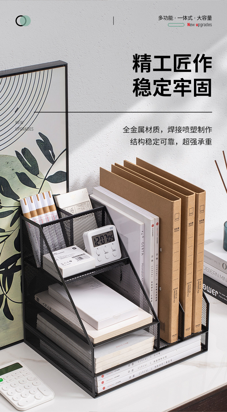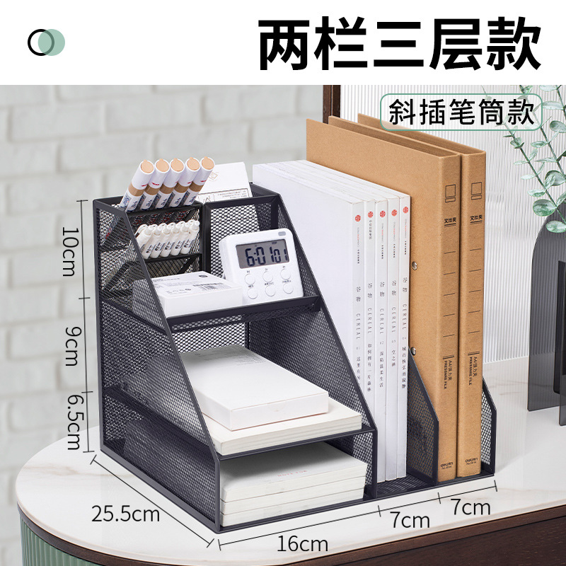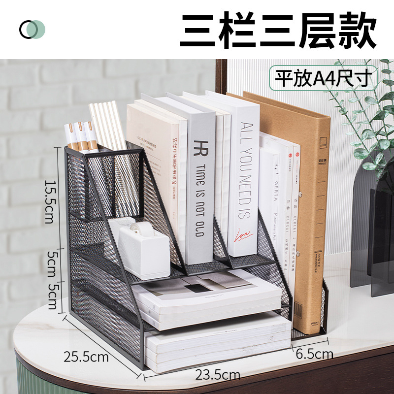 flat a4 book stand/black (three-column three-layer left pen holder)