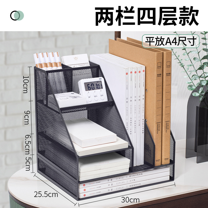 flat a4 book stand/black (two columns, four layers, left pen holder)