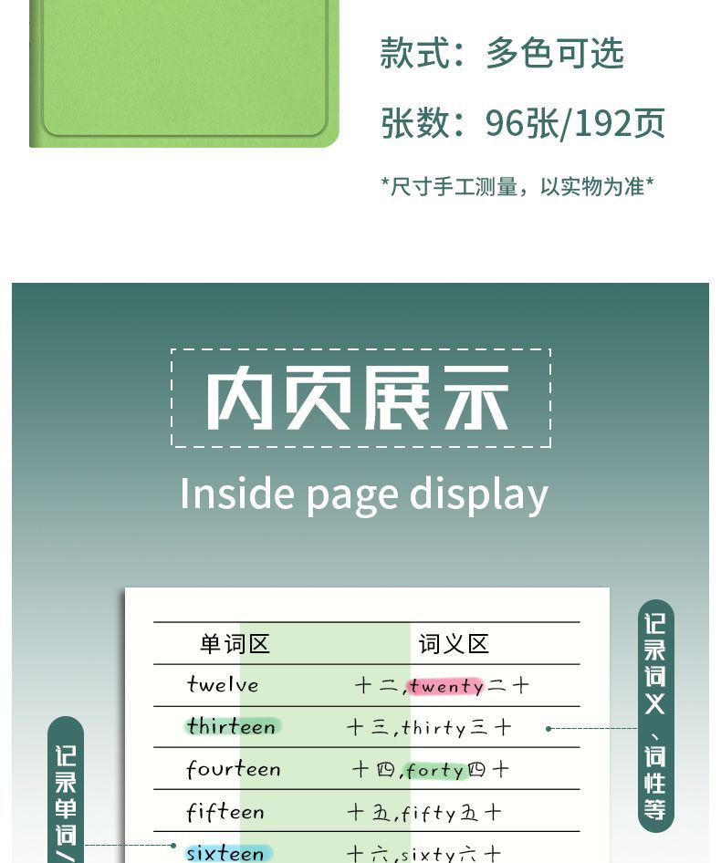 square vocabulary book-mint green