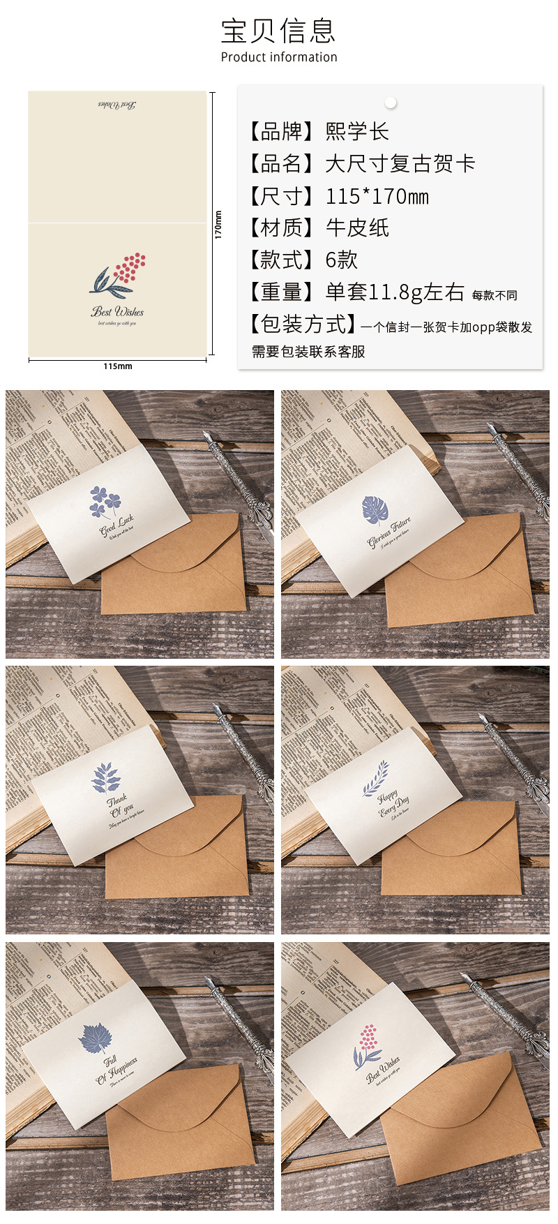 yu [retro kraft paper greeting card] with envelope and opp bag
