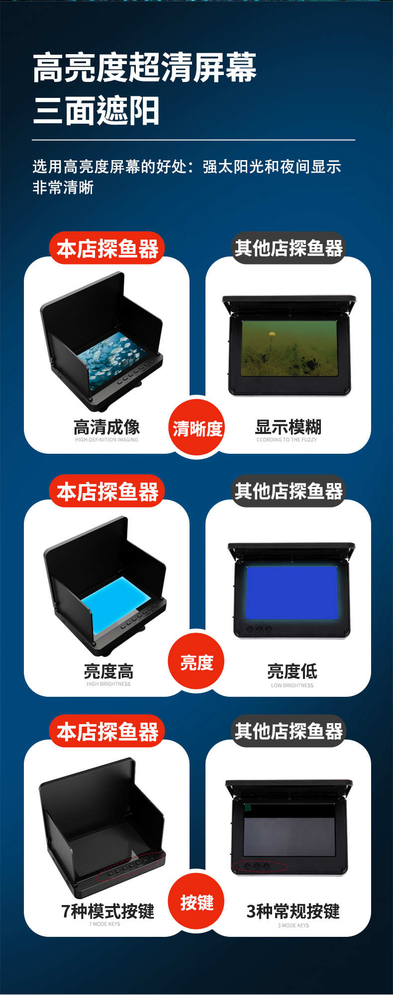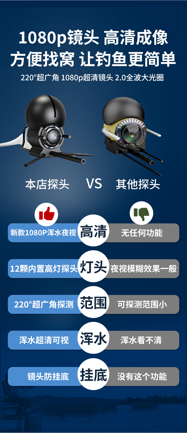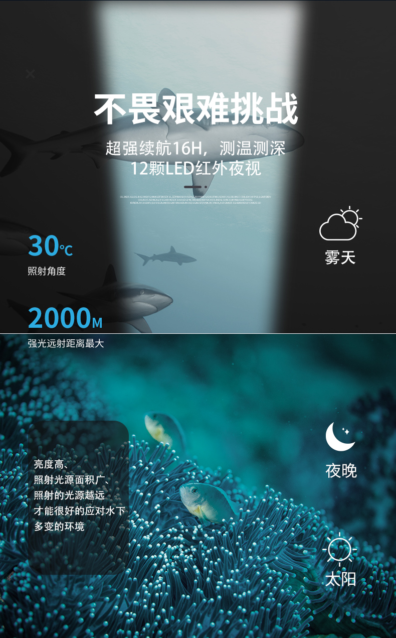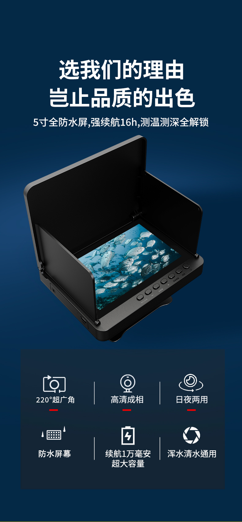 5-inch underwater fish detection camera hd full set monitor fishing visual hd temperature sensing deep fish finder 中文版