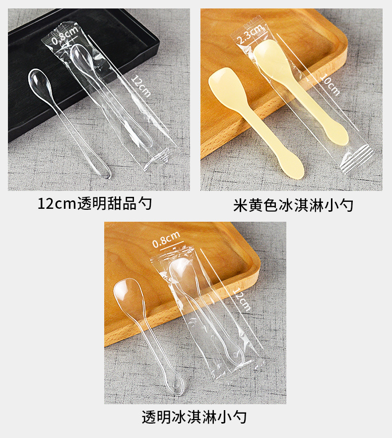 transparent ice-cream spoon independent pack 100 pieces