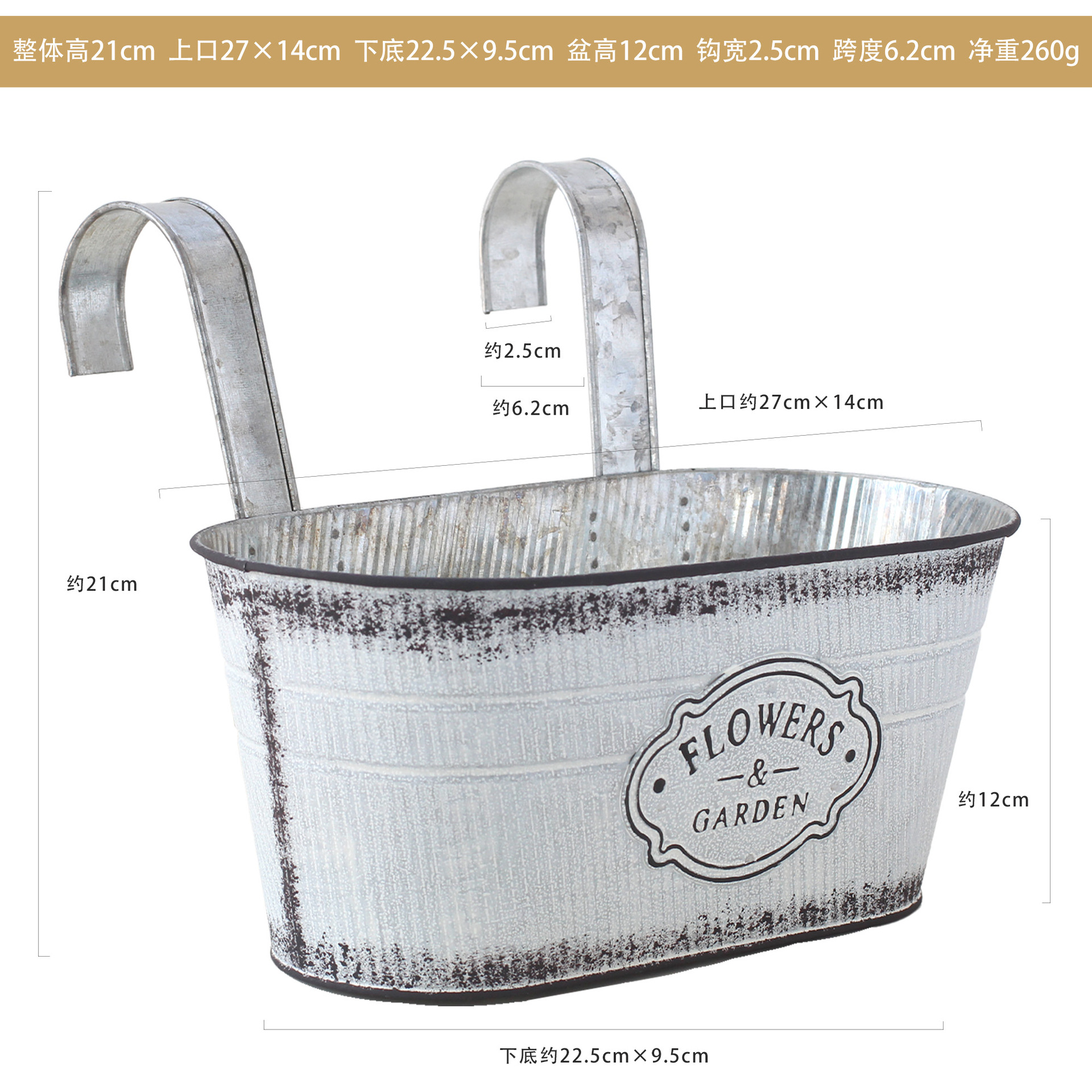 ■ 【Size】: Overall height with hooks about 21cm, upper opening about 27×14cm, bottom about 22.5×9.5cm, hook span about 6.2cm×hook width about 2.5cm×spacing between two hooks about 10cm, hole diameter about Φ1cm, net weight about 260g (specific options)