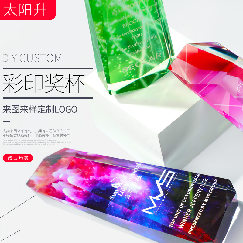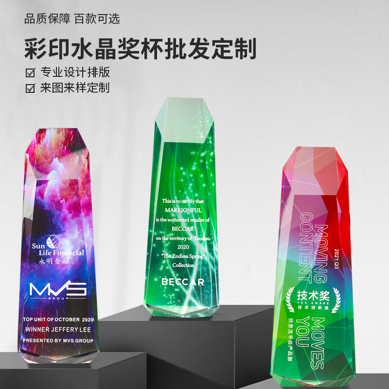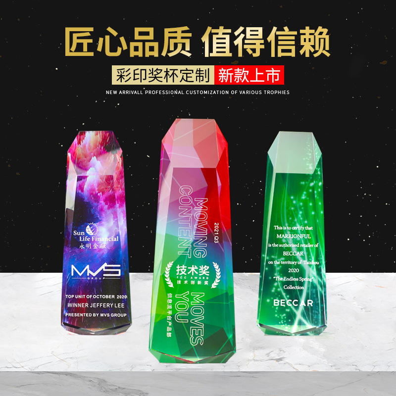 cross-border crystal trophy creative colorful medal making color printing trophy lettering staff licensing authority souvenir trophy 中文版