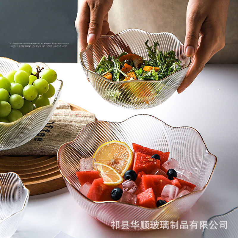 modern simple glass bowl fruit salad bowl creative dessert bowl set internet celebrity flower series factory wholesale 中文版