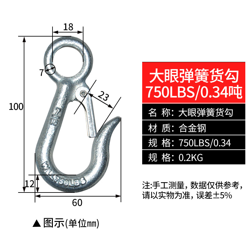 big eye spring cargo hook 0.34t (570lbs)