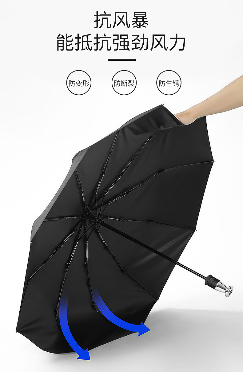 black/metal handle folding umbrella