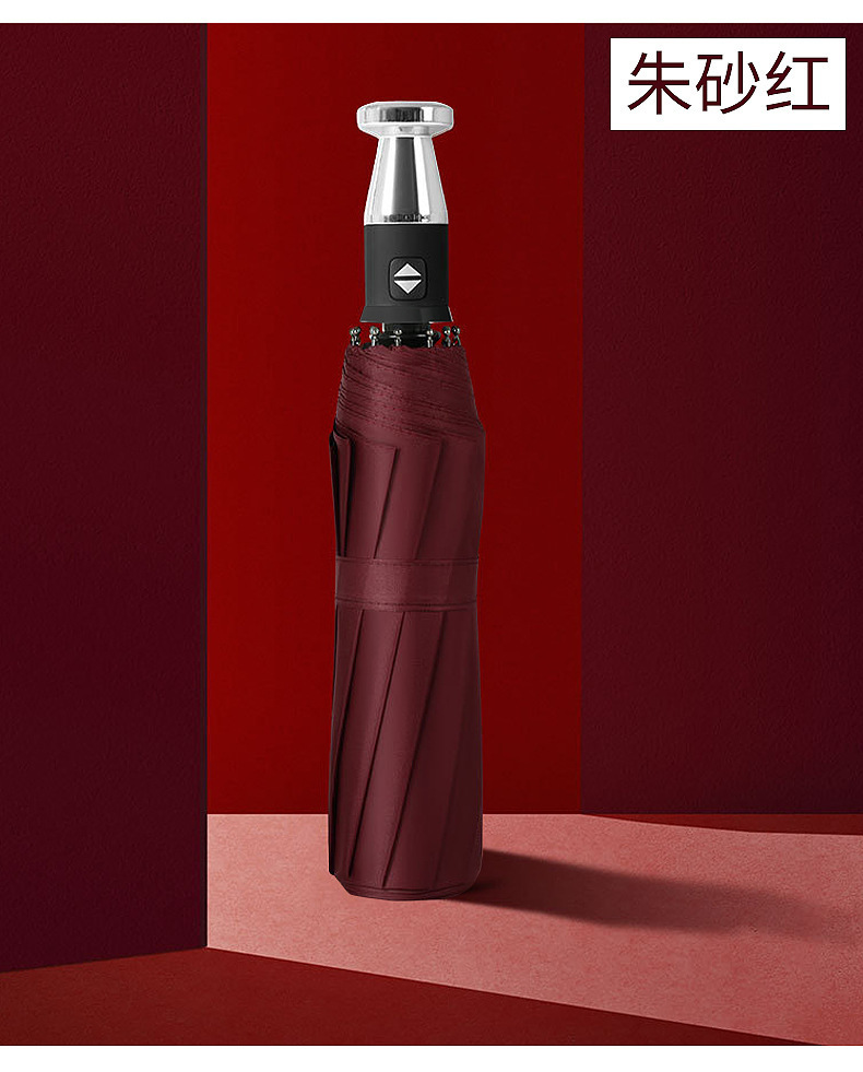 wine red/metal handle folding umbrella