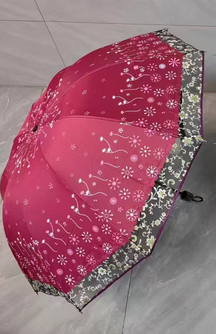65cm 10 black glue edge umbrellas rose red,