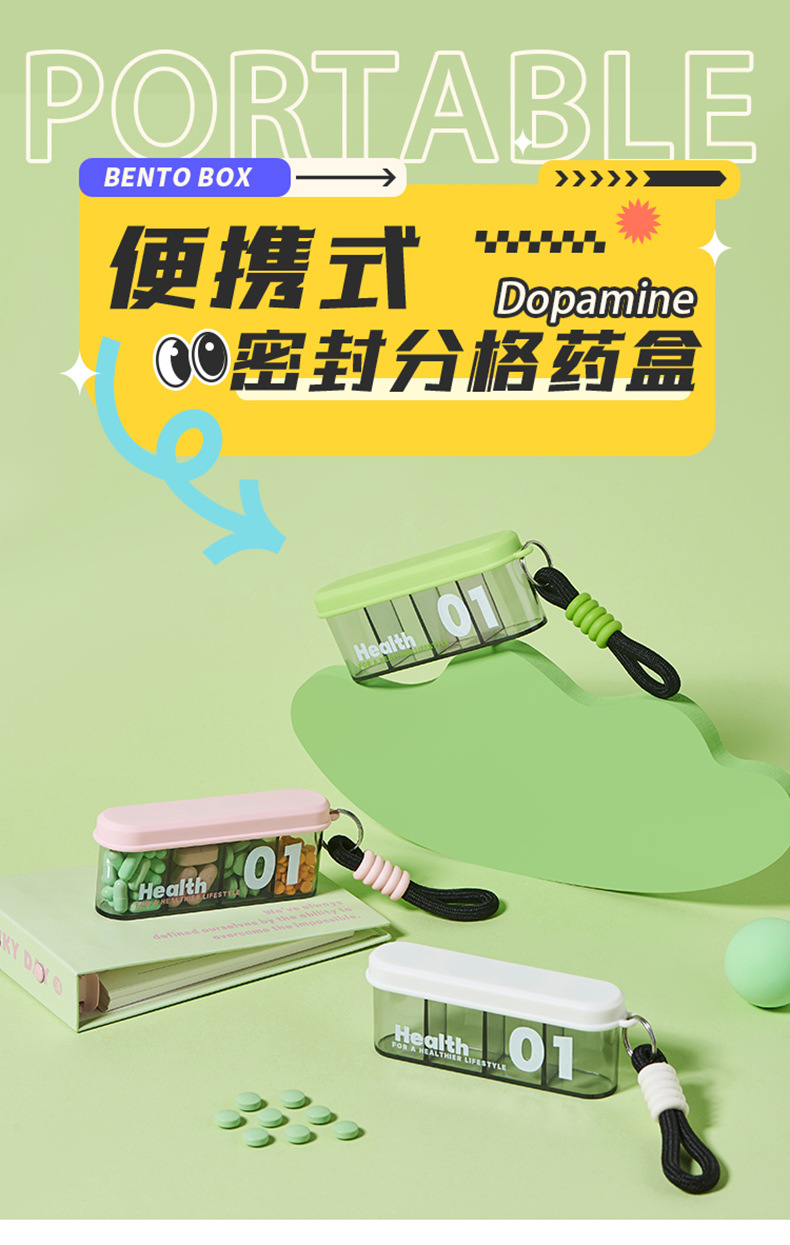 Bar-shaped compartmentalized medicine box with dopamine design