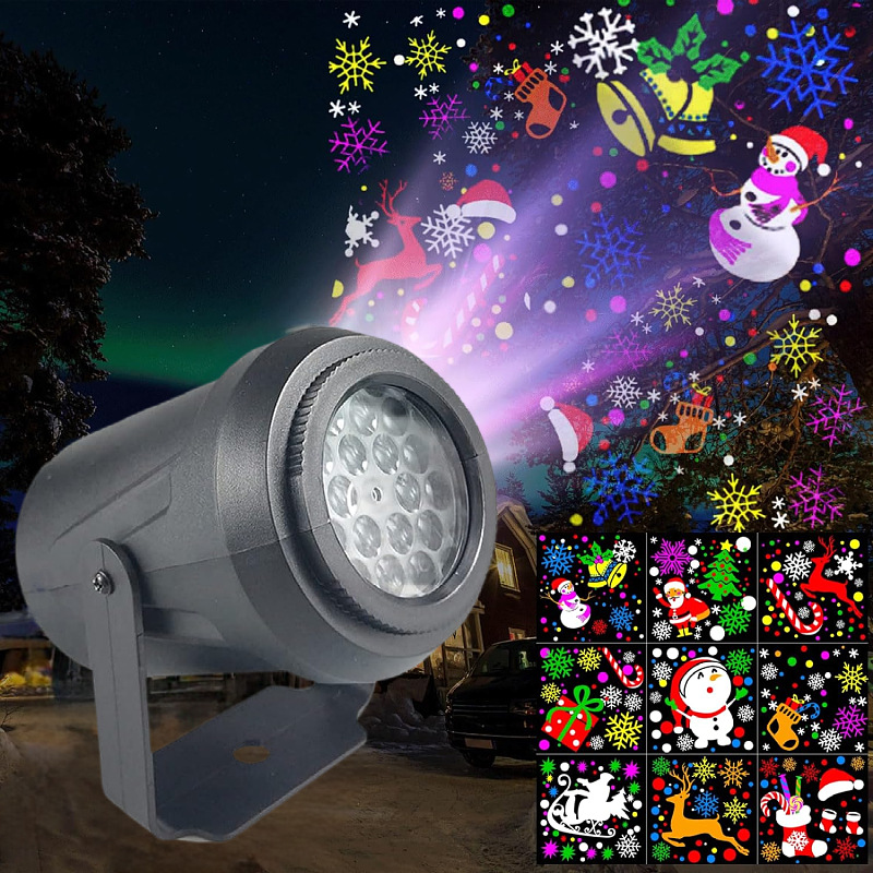 foreign trade exclusive mini 16 pattern blizzard christmas projection lamp colorful spinning snowflake christmas tree decoration 中文版